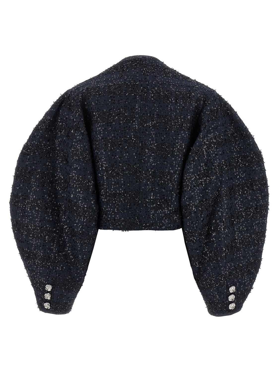 Блейзер из ткани букле 'Bouclé Short' с вышивкой пайетками по всей поверхности, укороченная модель болеро, застежка на пуговицы спереди, круглый вырез, широкие длинные рукава.