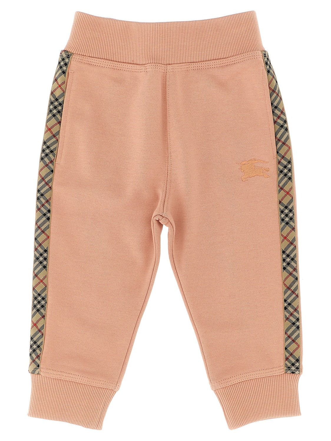 Детские джоггеры из начесанного хлопка 'Jackson Check Tape' с отделкой из гросгрейна с принтом 'Burberry Check' по бокам, вышивкой в тон в виде «Всадника-рыцаря» спереди, регулируемой эластичной талией на шнурке, карманами и манжетами по низу штанин.