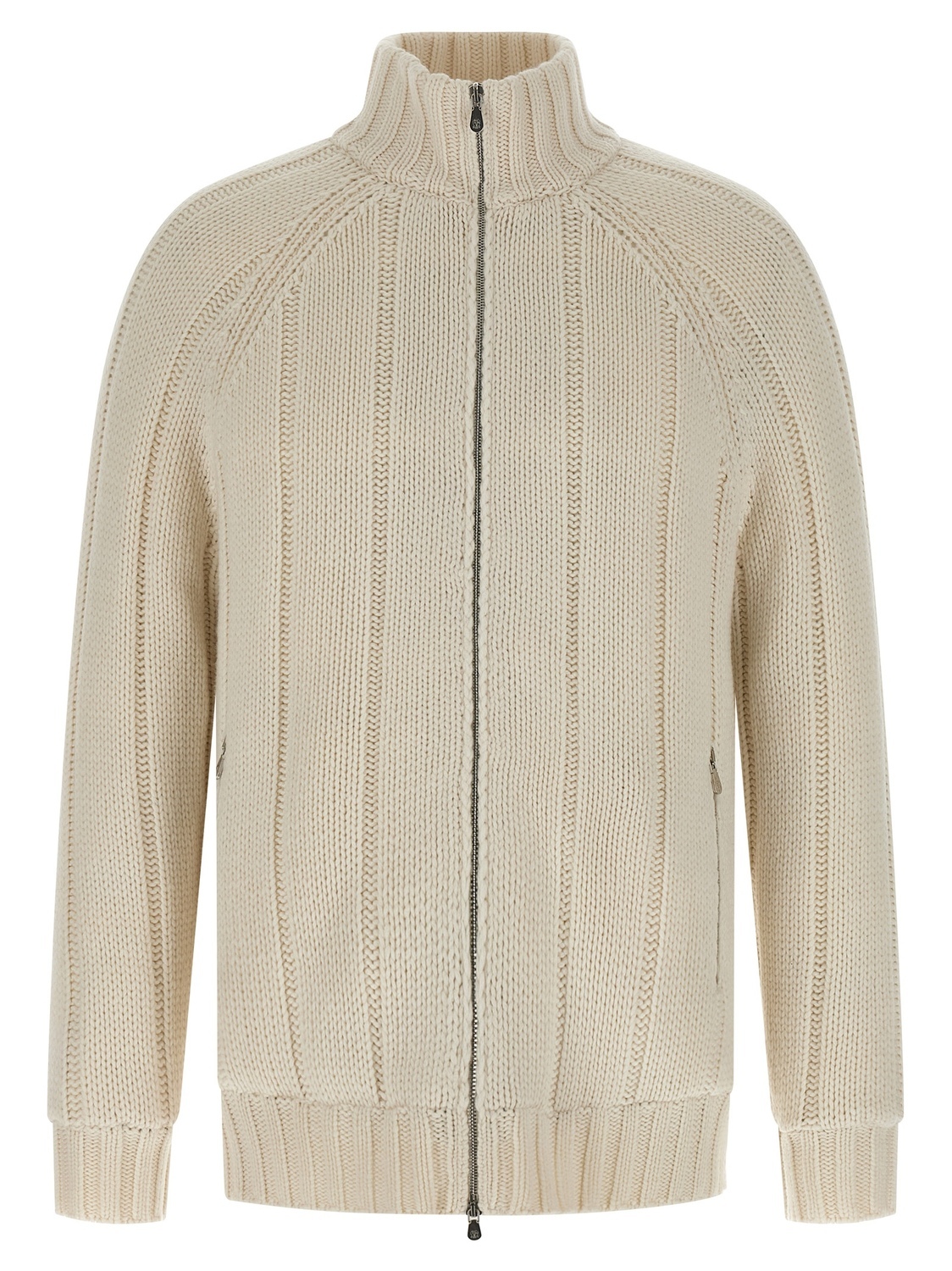 Стеганая куртка из кашемирового трикотажа, кардиган с высоким воротником, застежка на молнию, боковые карманы, длинные рукава с манжетами.
