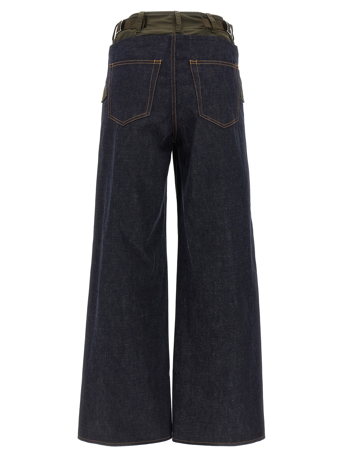Джинсы из хлопкового денима 'Denim Pants' с верхней вставкой из нейлона, контрастной строчкой, застежкой на молнию и пуговицу спереди, карманами, широкими штанинами.