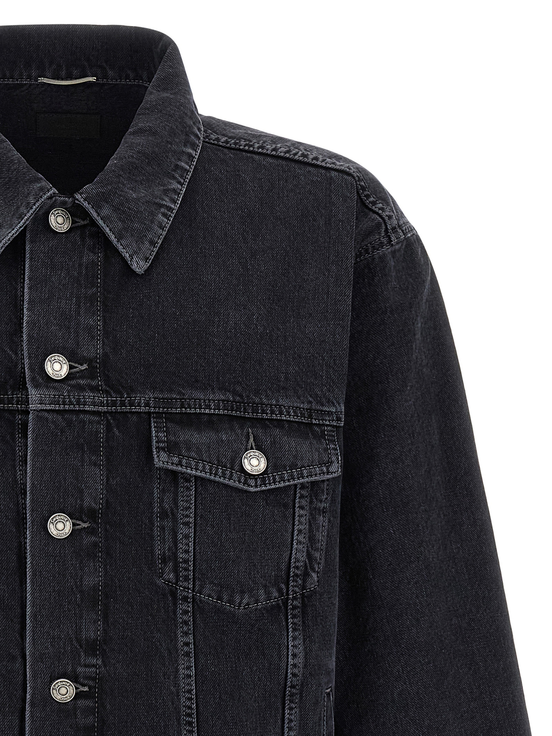 Куртка 'Trucker' из хлопкового денима с эффектом делаве, с рубашечным воротником, застежкой на пуговицы спереди, карманами, длинными рукавами с манжетами и спущенными плечами, логотипом на спинке.