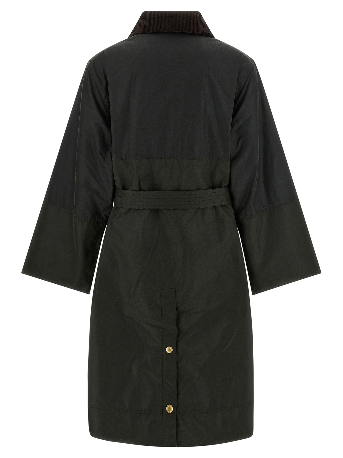 Куртка из вощеного хлопка 'Milda' с воротником из вельвета, вышитым логотипом и металлическим карабином D-образной формы спереди, застежкой на молнию и кнопки, карманами, длинными рукавами со складными манжетами, разрезом сзади, подкладкой из хлопка в клетку, съемным поясом.