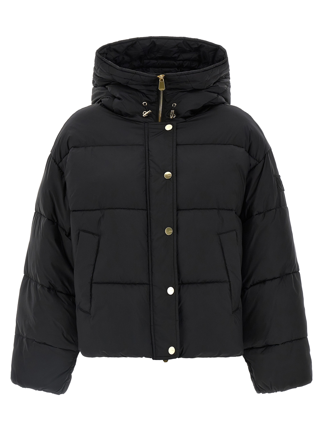 Стеганая и утепленная пуховая куртка из технического канваса с полуглянцевым покрытием 'Impasto', с большим регулируемым капюшоном, высоким воротом, застежкой на молнию и кнопки спереди, длинными рукавами с эластичными манжетами и нашивкой с логотипом 'Love Birds' в тон, а также кулиской по нижнему краю.