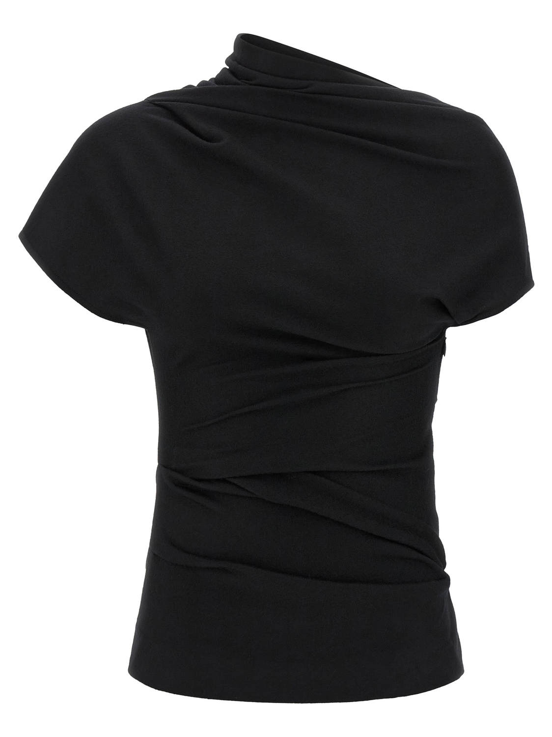 Топ 'Flop' из эластичной шерсти с вырезом-лодочка, драпировкой спереди и сзади, короткими рукавами и боковой застежкой-молнией.