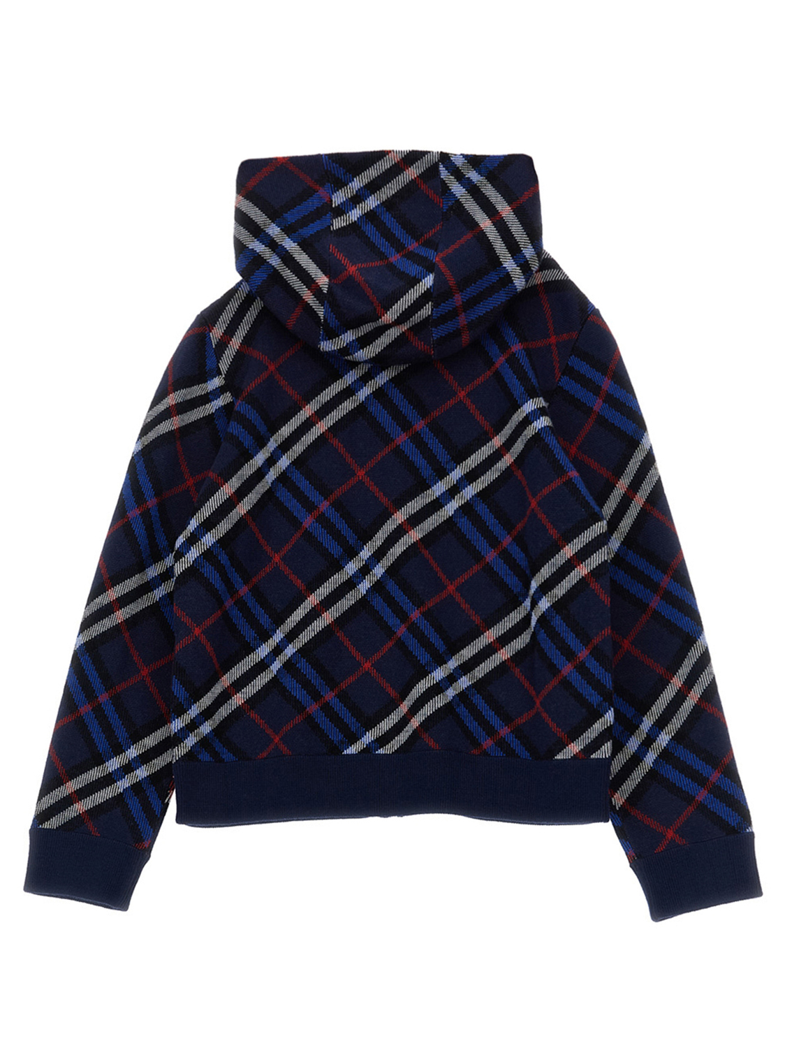 Кардиган «Джимми» из шерстяного жаккарда в клетку, с капюшоном, застежкой-молнией спереди, боковыми карманами и длинными рукавами с манжетами.