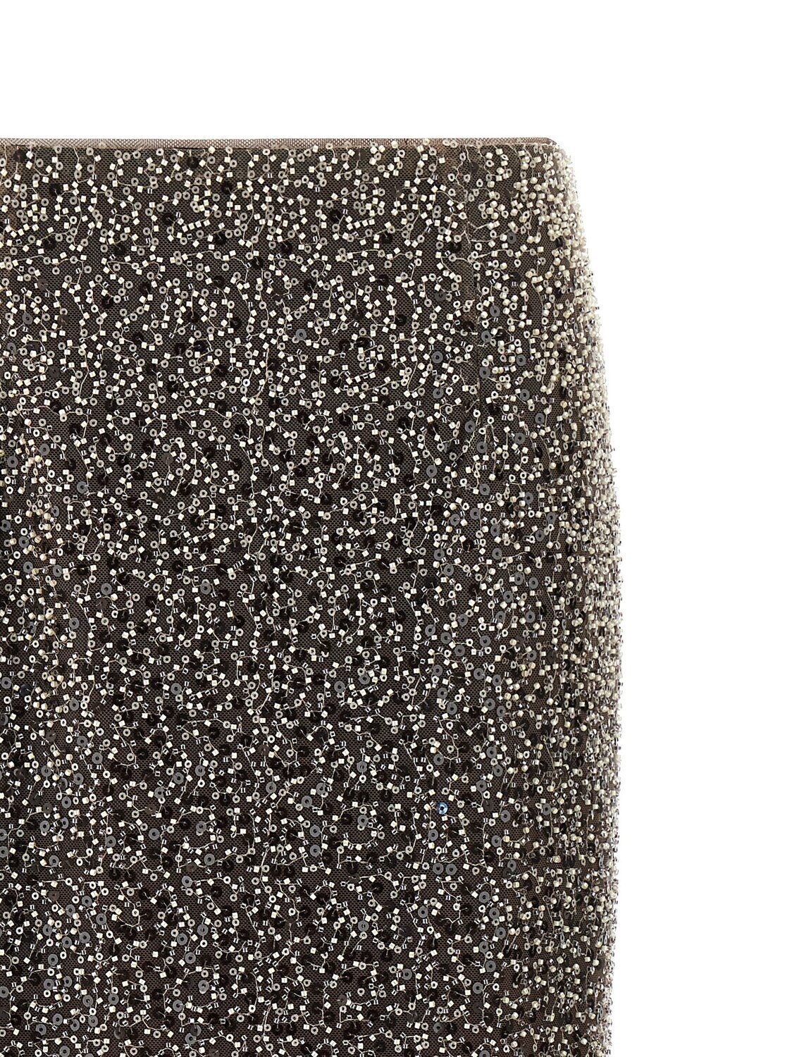 Длинная юбка 'Beaded Maxi' из полупрозрачной ткани с пайетками и бисером по всей поверхности, с завышенной талией, застежкой-молнией и разрезом сзади, с подкладкой.