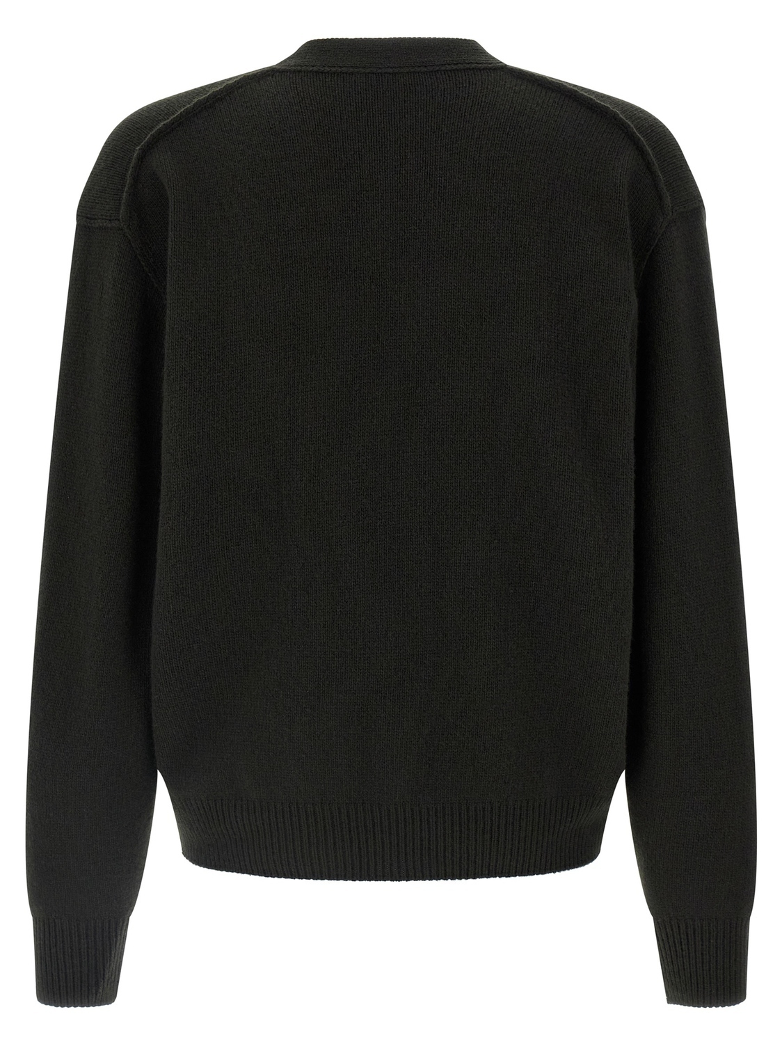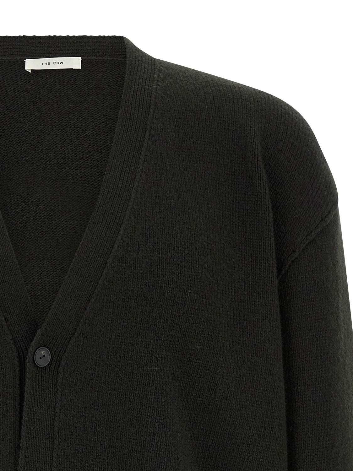Кардиган из кашемира средней плотности 'Mats' с V-образным вырезом, застежкой на пуговицы спереди, длинными рукавами с манжетами и заниженными плечами.