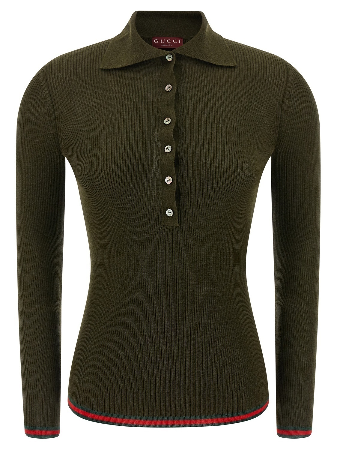 Поло из сверхтонкого рубчатого шелка и кашемира с отделкой 'Nastro Web', воротником и пуговицами, и длинными рукавами.
