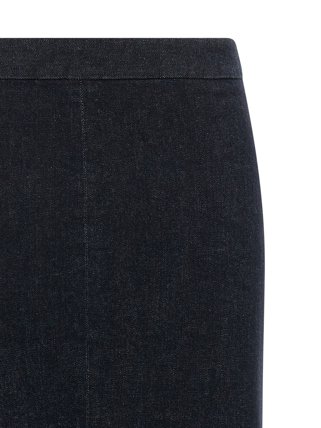 Миди-юбка из эластичного хлопкового денима с застежкой-молнией и воланом на заднем подоле, без подкладки.