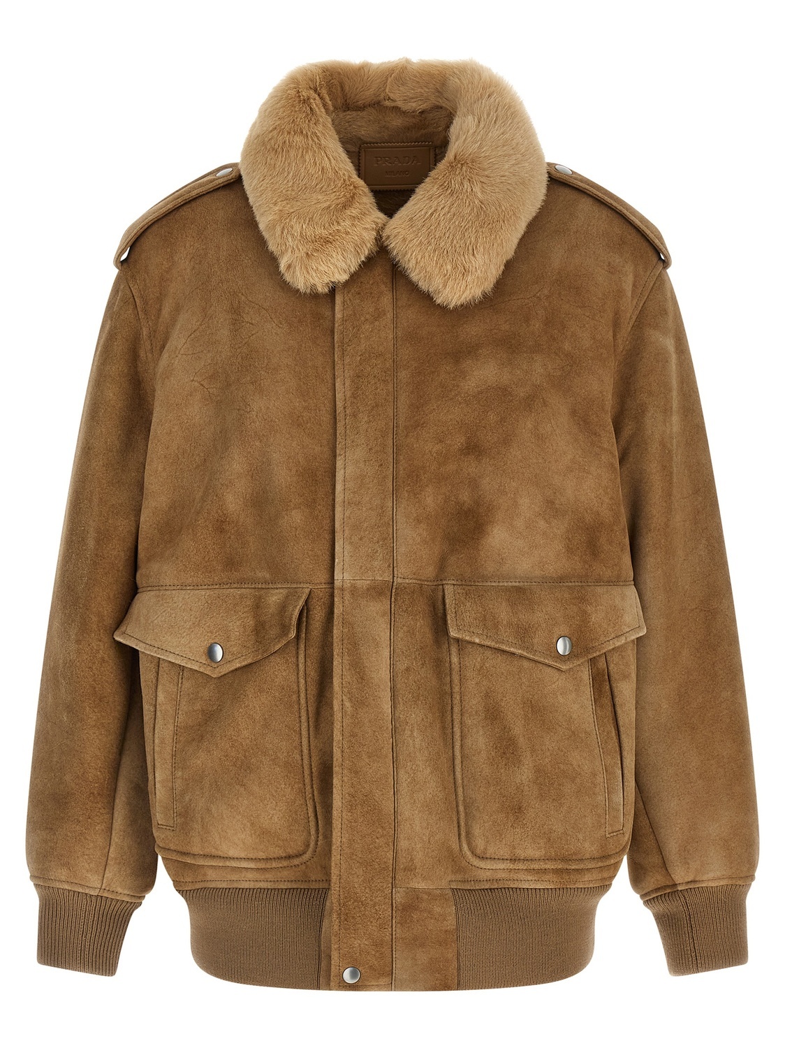 Бомбер из овчины Prada, бежевый