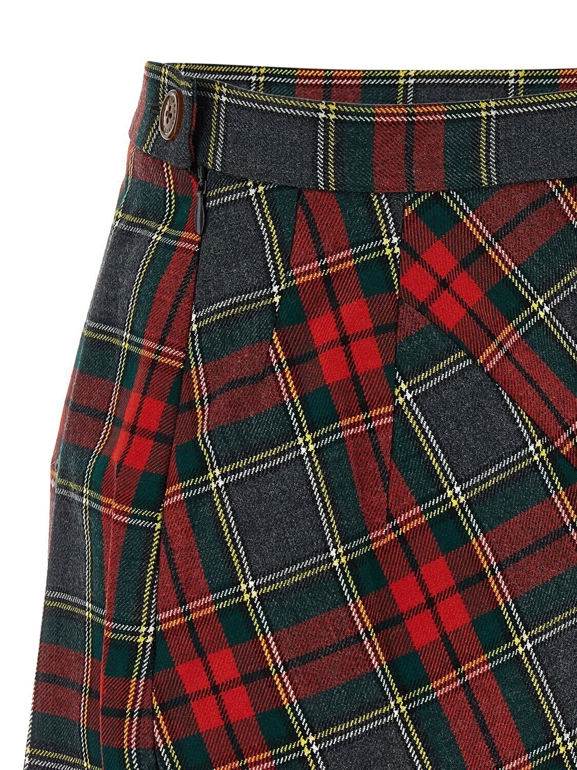 Мини-юбка 'Infinity' из ворсистой шерсти с узором 'Scarlet Tartan' по всей поверхности, кроя "кошелек" с застежкой на пуговицу и боковой молнией, средней посадки, с защипами спереди и сзади, асимметричным подолом, жаккардовой подкладкой с орбами.
