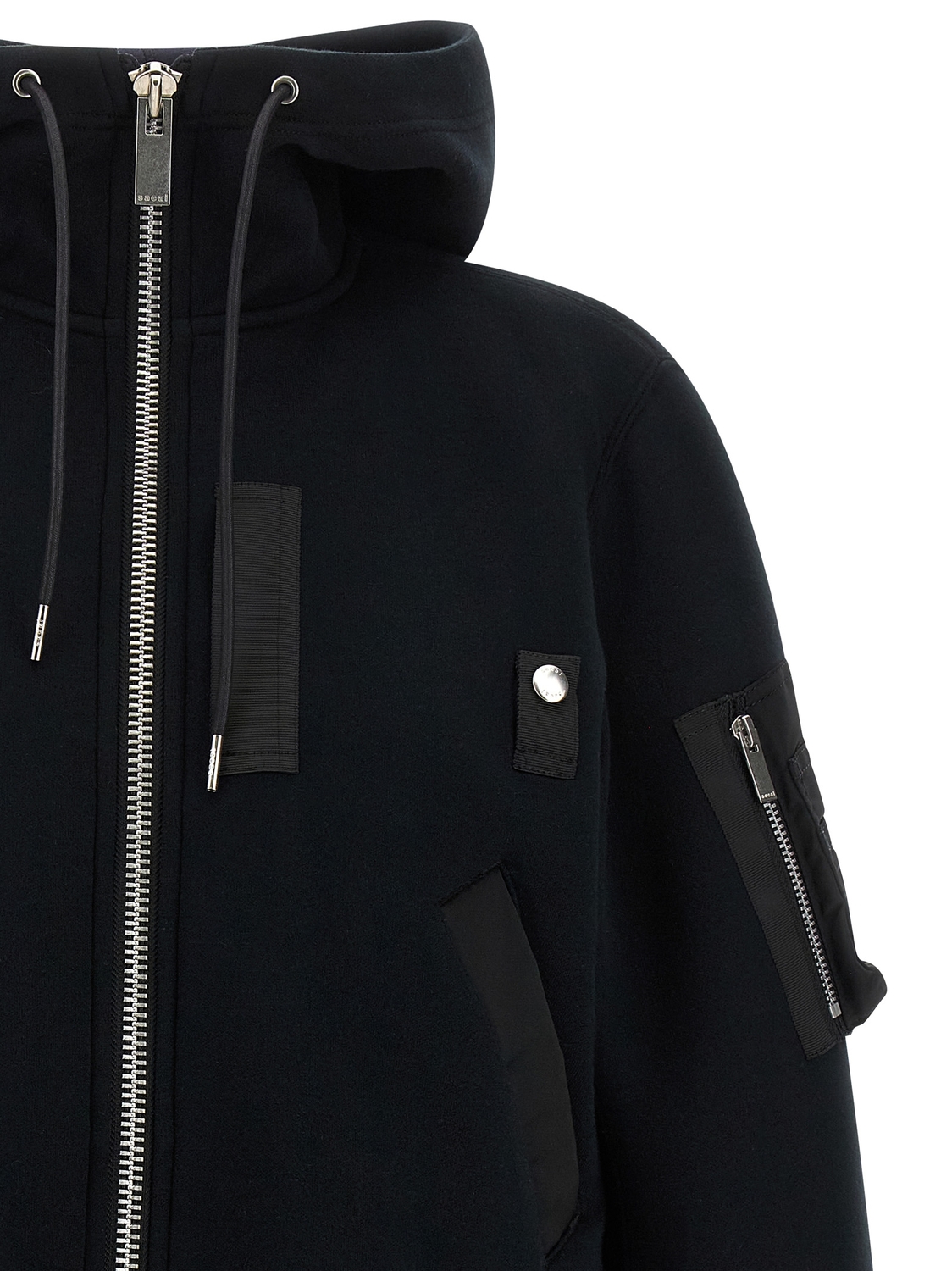 Двухслойное худи 'Sponge' из хлопка и нейлона с застежкой-молнией спереди, карманами, длинными рукавами с манжетами и асимметричным подолом.