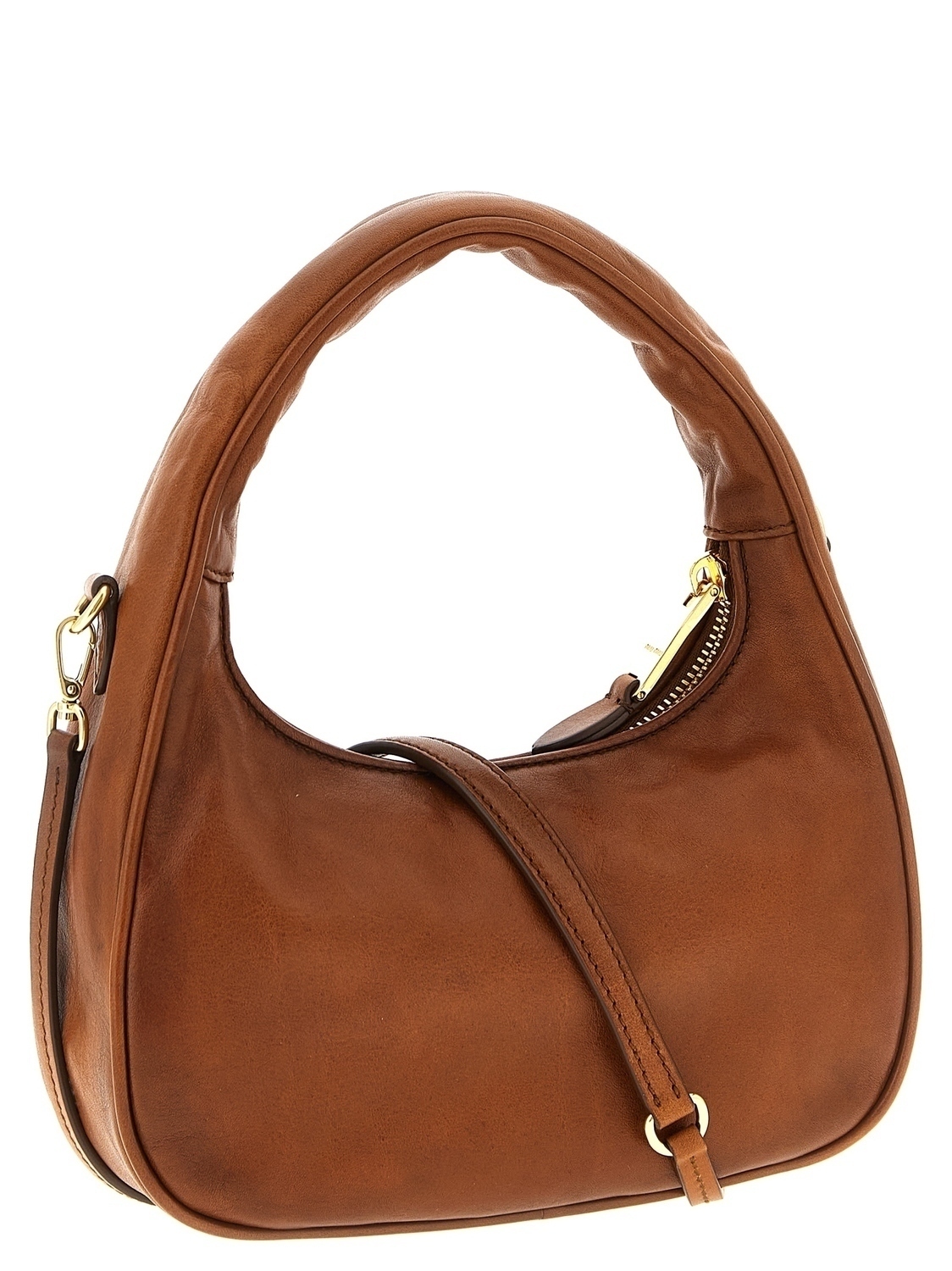 Кожаная сумка 'Hobo Wander' с тисненным кожаным логотипом в тон на передней стороне, застежкой-молнией сверху, фиксированной ручкой и съемным плечевым ремнем.