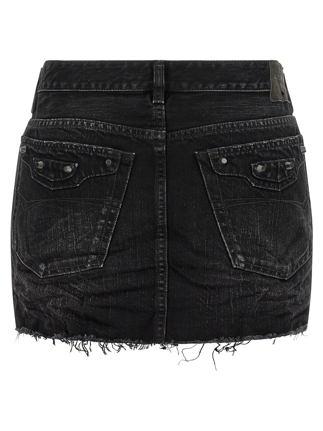 Джинсовая мини-юбка 'City' из хлопкового денима с эффектом потертости и стирки, культовые детали сумки Le City на передних и задних боковых карманах, застежка на молнию и пуговицу спереди, карманы, задний логотип и необработанный край подола.