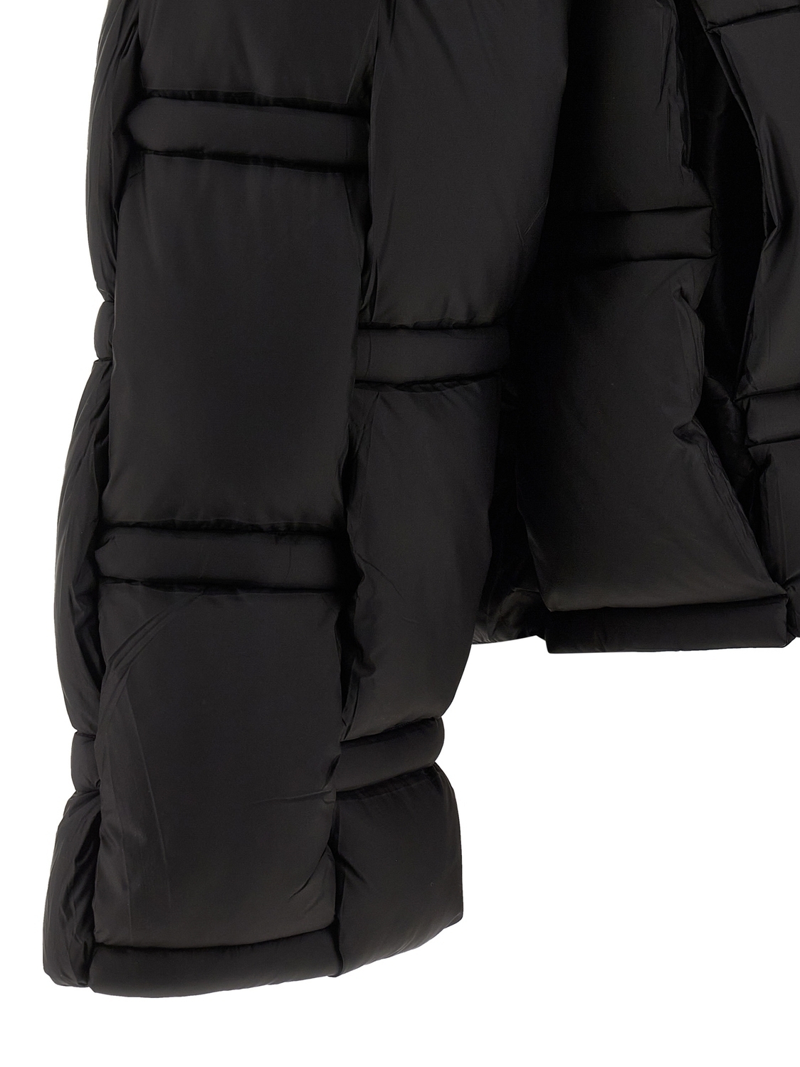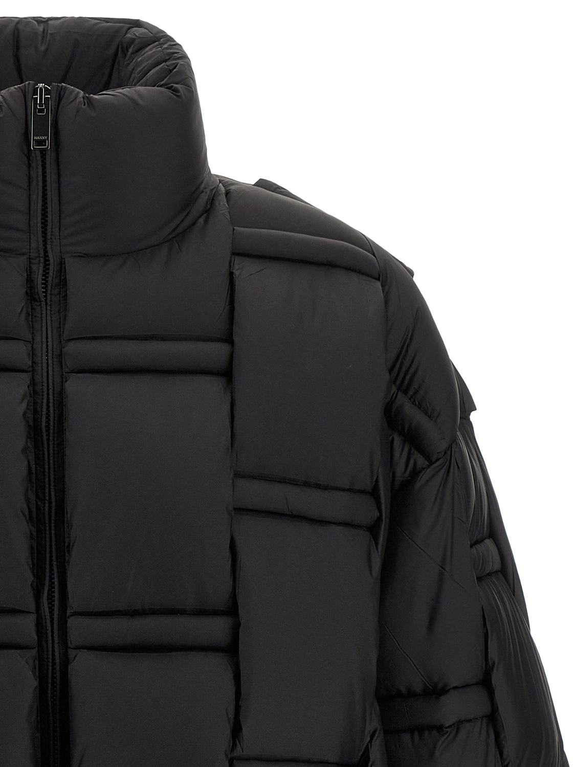 Пуховик из нейлона с плетеной 3D-структурой и наполнителем из гусиного пуха, с высоким воротником, застежкой-молнией спереди, карманами и длинными рукавами.