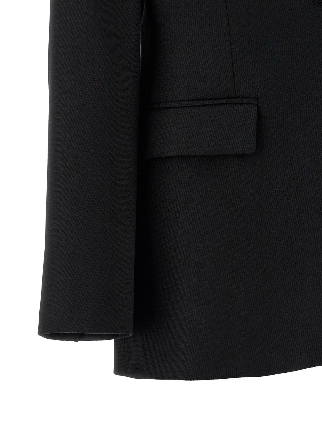 Однобортный пиджак 'Fausta' из шерстяного фланеля и вискозы с отделкой в тон, застежка на пуговицу спереди, лацканы, нагрудный карман, карманы с клапанами, подплечники, длинные рукава и регулируемый пояс на спине.
