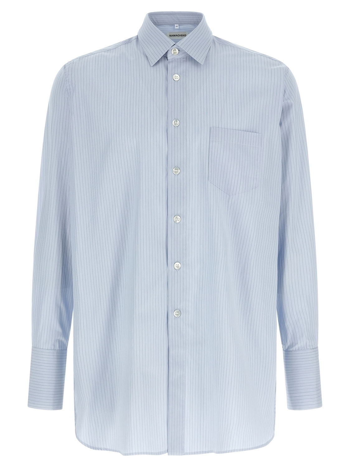 Хлопковая рубашка в полоску «Hernan» с застежкой на пуговицы спереди, нагрудным карманом, длинными рукавами с широкими манжетами и боковыми разрезами.
