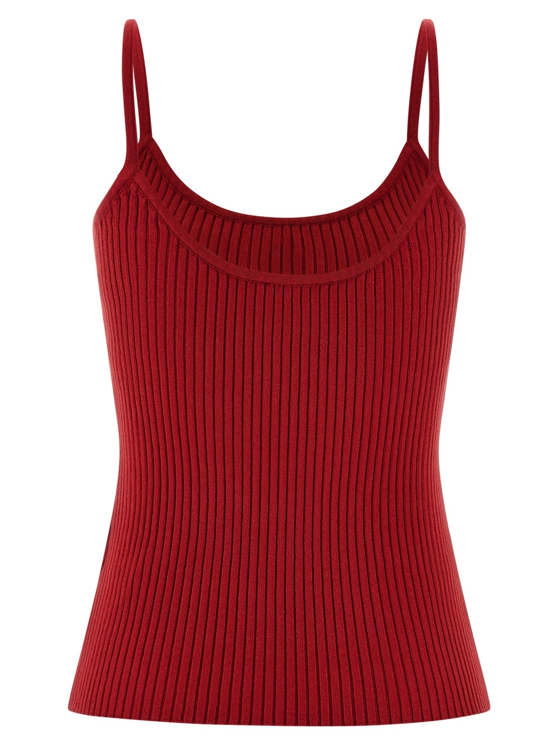 Топ-майка 'Reedition' из эластичного рубчатого трикотажа из вискозы с контрастной вышивкой логотипа спереди, тонкими бретелями и широкой круглой горловиной спереди и сзади.