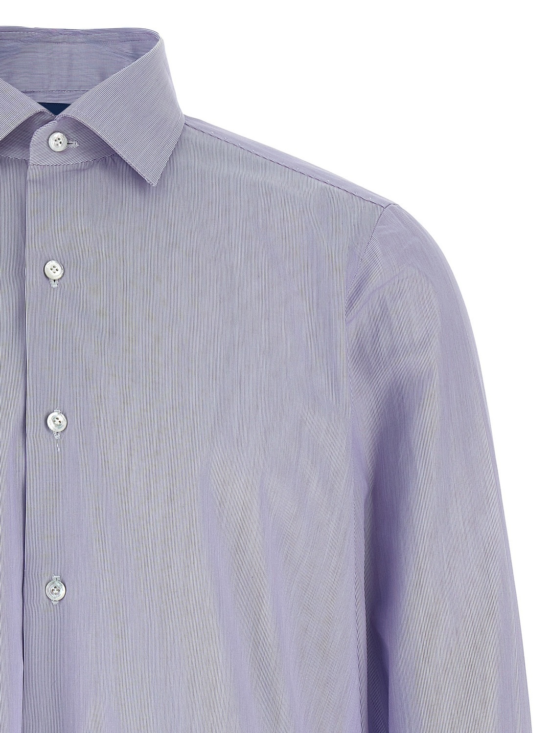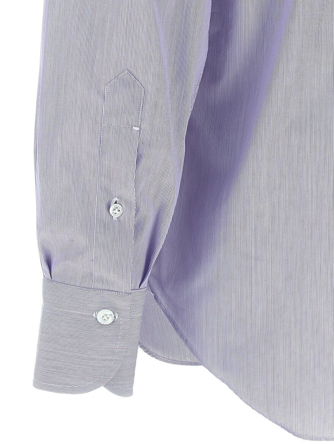 Хлопковая рубашка в полоску 'Napoli' с застежкой на пуговицы, длинными рукавами с манжетами, контрастной атласной деталью с логотипом на боковых разрезах.