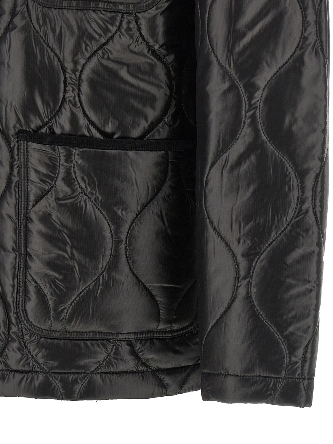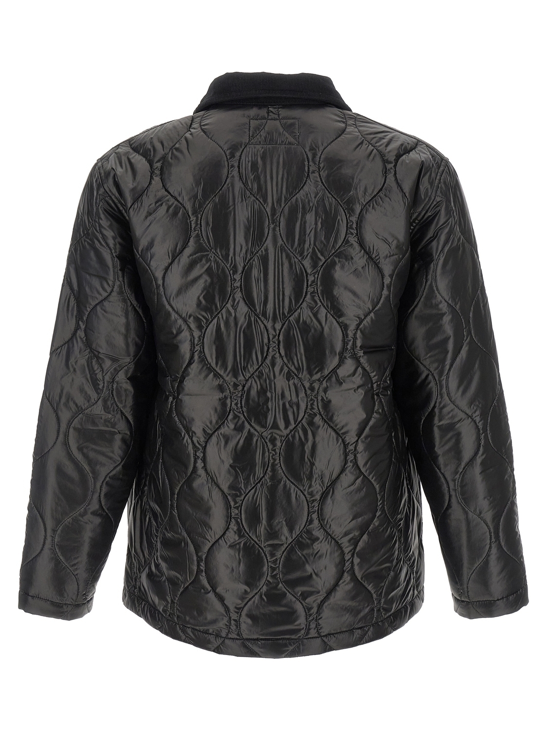 Стеганая нейлоновая куртка Oscar с однотонным вельветовым воротником и деталями, нашивкой с логотипом, застежкой на кнопки спереди, карманами, длинными рукавами с манжетами.