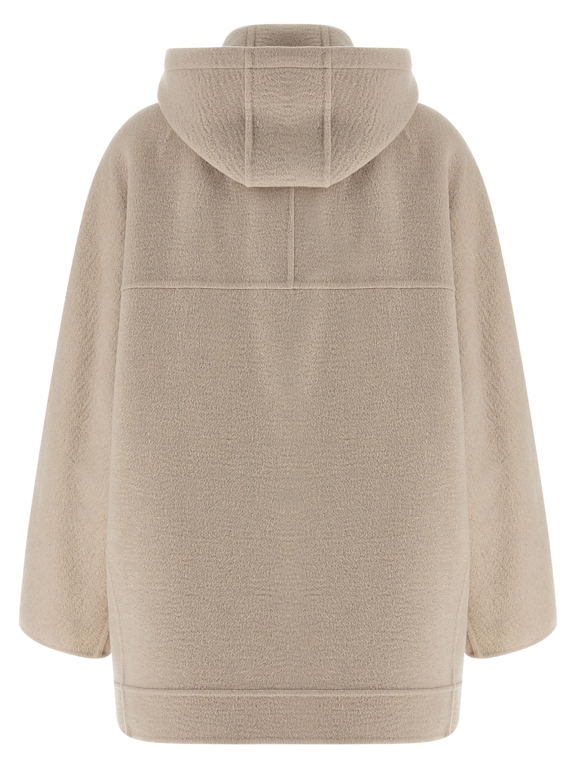 Пальто 'Gradi' из чистого вымытого кашемира, с двойной ручной прошивкой, в стиле флиса, с регулируемым капюшоном и кожаным шнурком, застежкой-молнией спереди, карманами, длинными широкими рукавами со спущенной линией плеча, без подкладки.