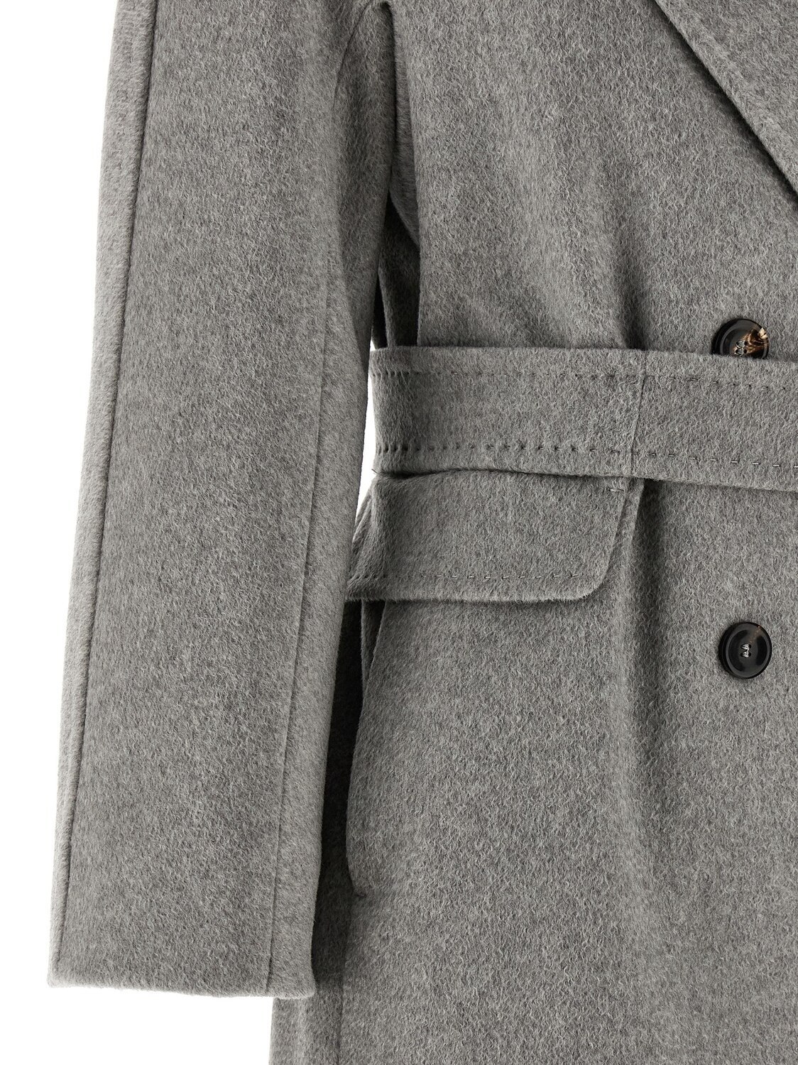Пальто миди 'Panteon' из чистого кашемира, альпаки и шерстяного сабле-дрепа с двубортной застежкой на пуговицы и отложным воротником, карманы, длинные рукава кимоно, подкладка из вискозы, съемный пояс.