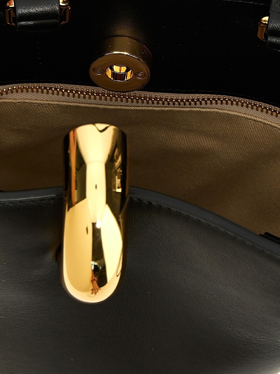 Мини-сумка-бакет 'Le Petit Bambola' из гладкой кожи асимметричной формы, с металлическим логотипом спереди, двумя фиксированными ручками, магнитной застежкой с крупным металлическим кольцом, хлопковой подкладкой, съемным плечевым ремнем.