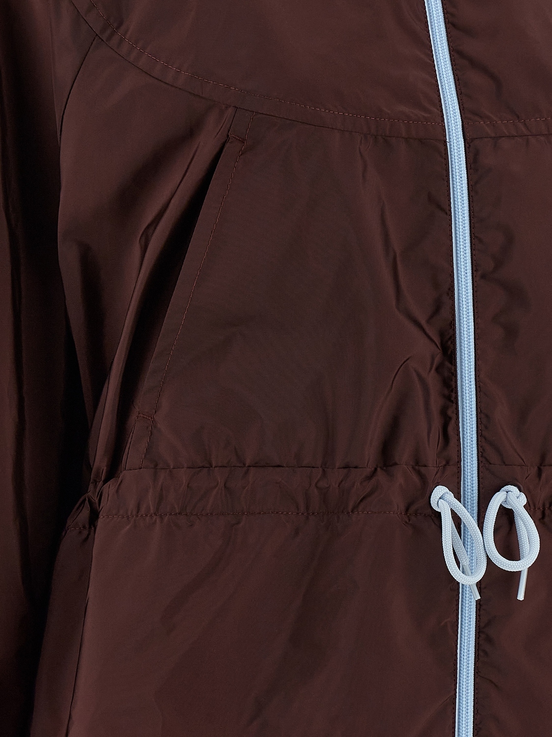 Блузон Re-Nylon с треугольным логотипом из эмалированного металла и застежкой-молнией спереди, высокий воротник с контрастной внутренней отделкой, карманы, кулиска на талии, длинные рукава с эластичными манжетами, без подкладки. ЭКОЛОГИЧНО: Этот продукт изготовлен из Re-Nylon - переработанной пряжи, созданной из переработанного и очищенного пластика, собранного в океанах, рыболовных сетей и текстильных волокон.