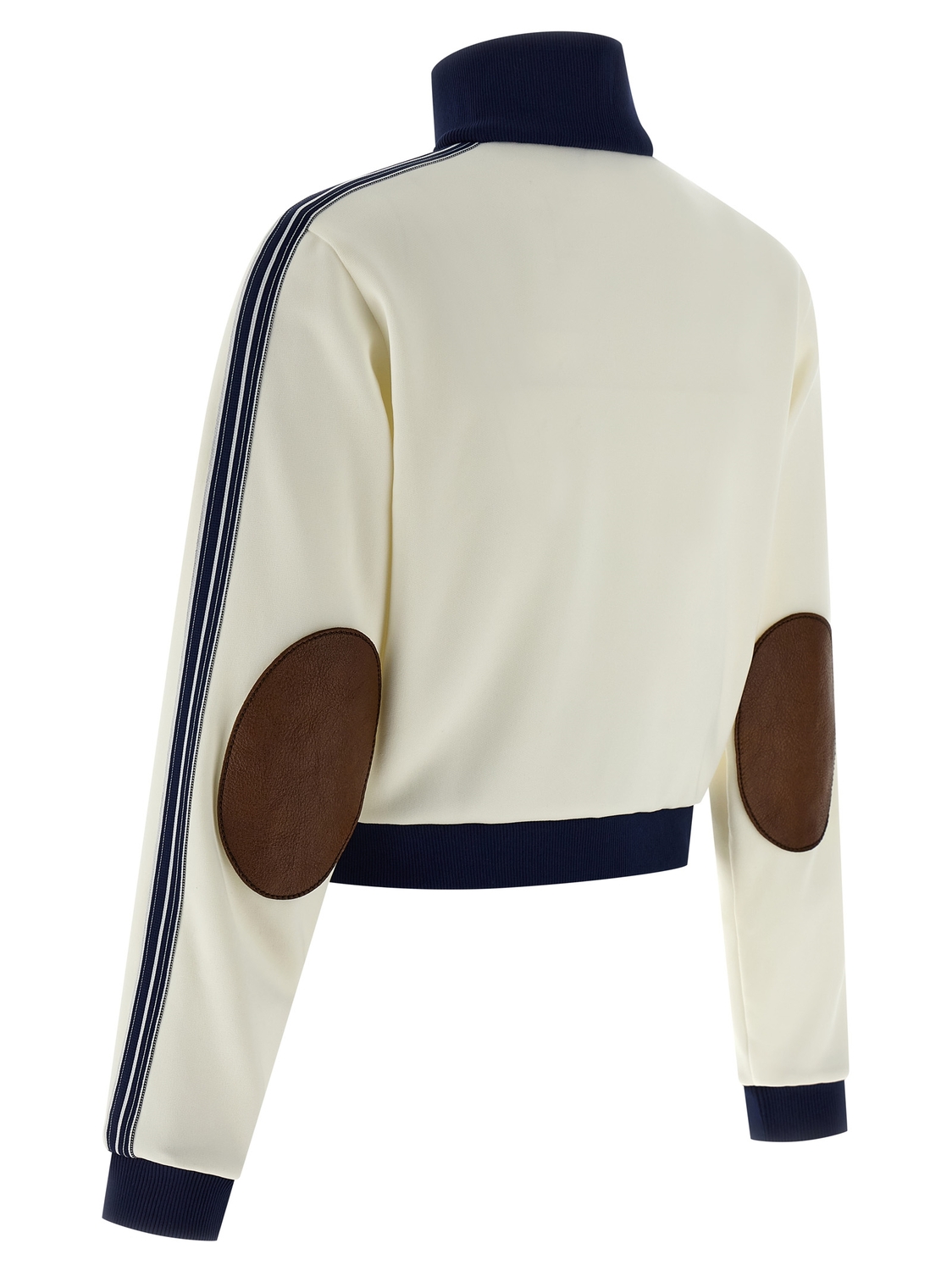 Блузон из технического флиса с контрастными деталями из ребристого эластичного трикотажа, укороченный крой, нашивка с логотипом и застежка-молния спереди, высокий воротник, карманы, длинные рукава с манжетами, лента с полосками и кожаная накладка на локтях.