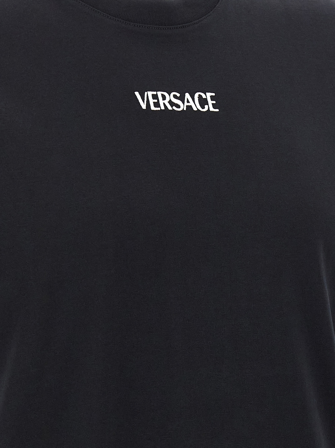 Футболка из хлопкового джерси с вышивкой логотипа Versace спереди, круглым вырезом и короткими рукавами.