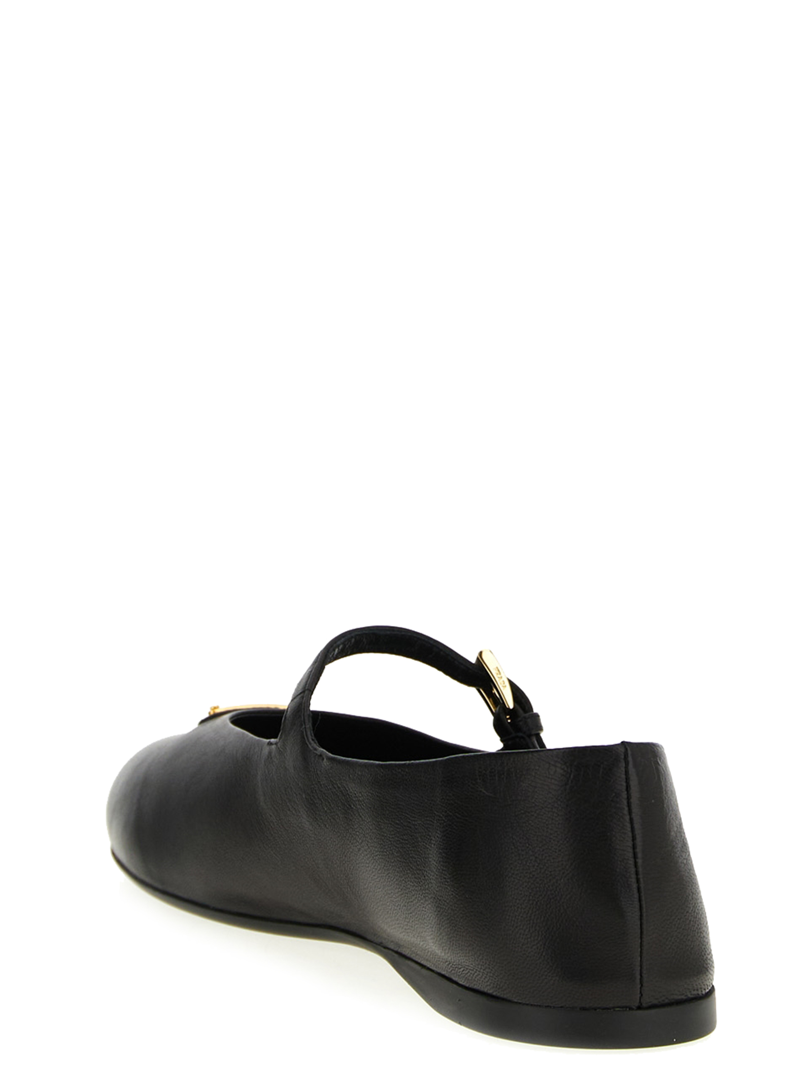Балетки из кожи наппа с закругленным носком, регулируемым ремешком с пряжкой, треугольным фронтальным логотипом из эмалированного металла и резиновой подошвой.