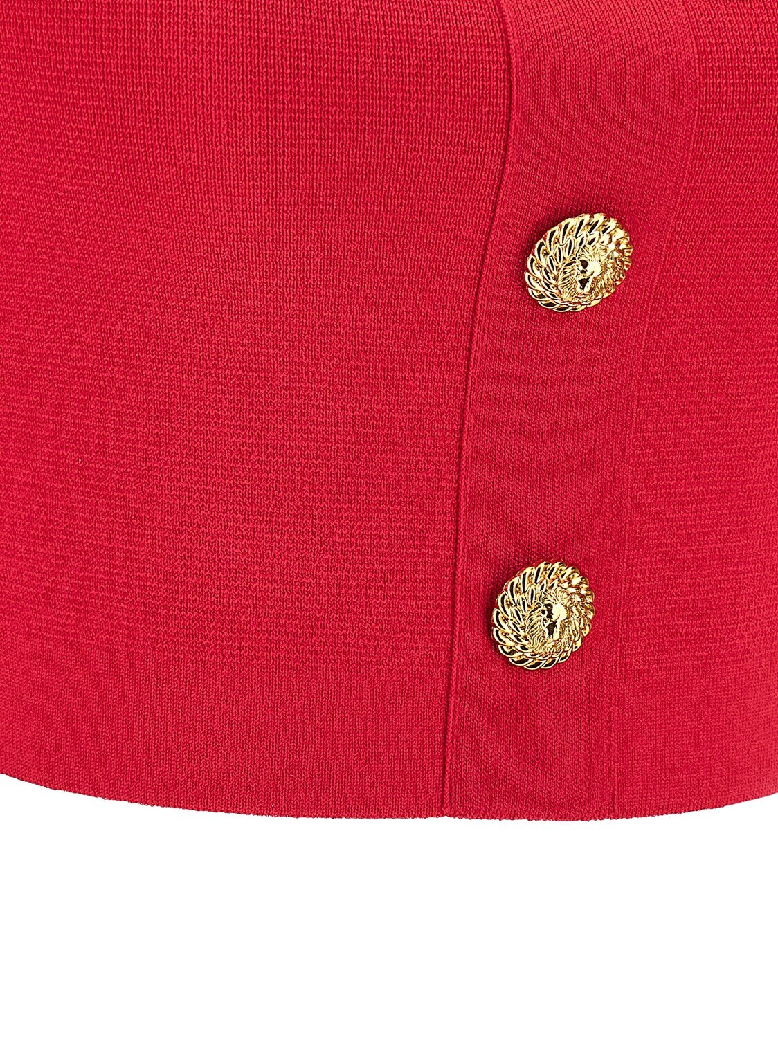 Трикотажный топ из вискозы с блестящим эффектом с тремя передними укороченными пуговицами 'Testa di leone' и тонкими бретелями.