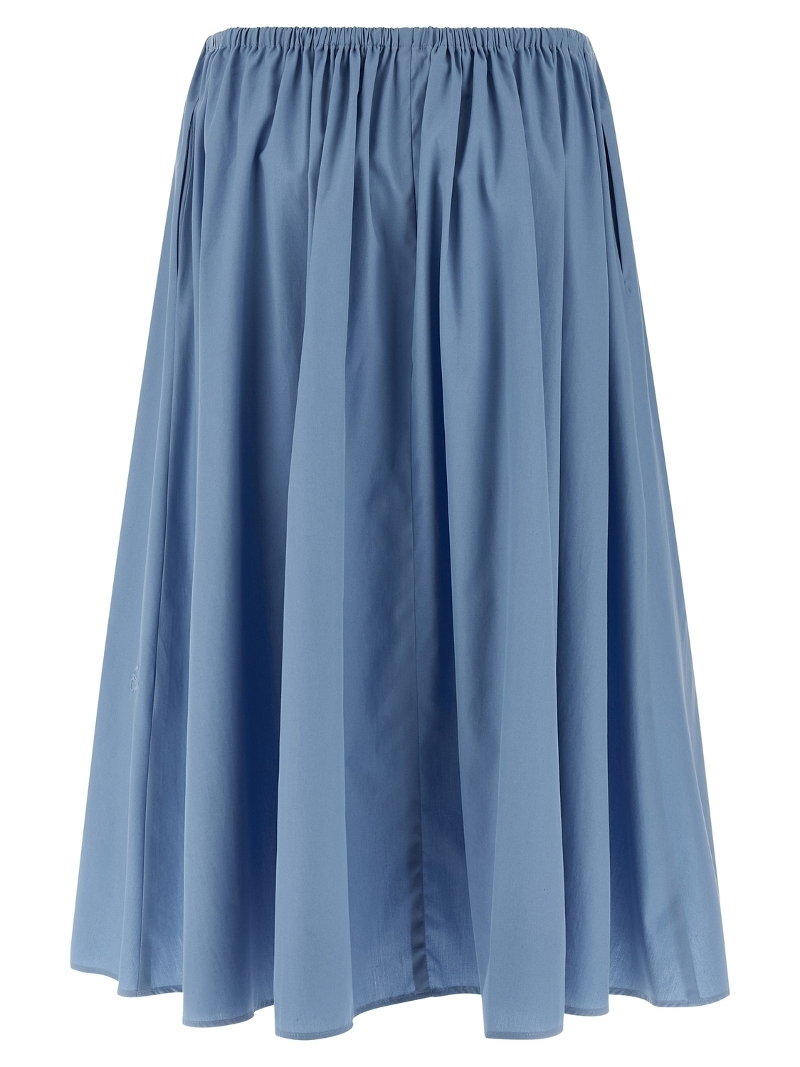 Миди-юбка из слегка расклешенного хлопкового поплина с регулируемым шнурком на талии, кожаными деталями с логотипом, боковыми карманами.