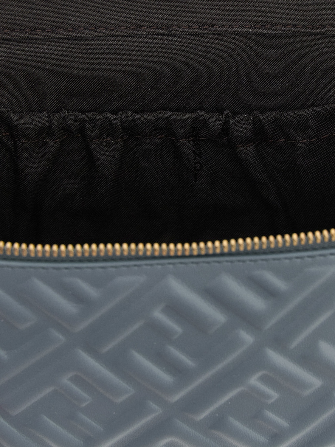 Кроссбоди-сумка «Vanity» из наппа с тисненым узором «FF», модель верхнего кейса, застежка на молнию с двумя бегунками и металлическими деталями «FF», фиксированная ручка и съемный плечевой ремень из кожи и цепочки.