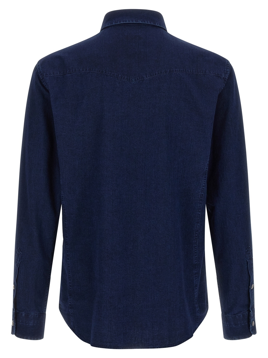 Джинсовая рубашка в стиле "вестерн" из легкого хлопкового поплина с застежкой на кнопки спереди, карманами, длинными рукавами с манжетами.