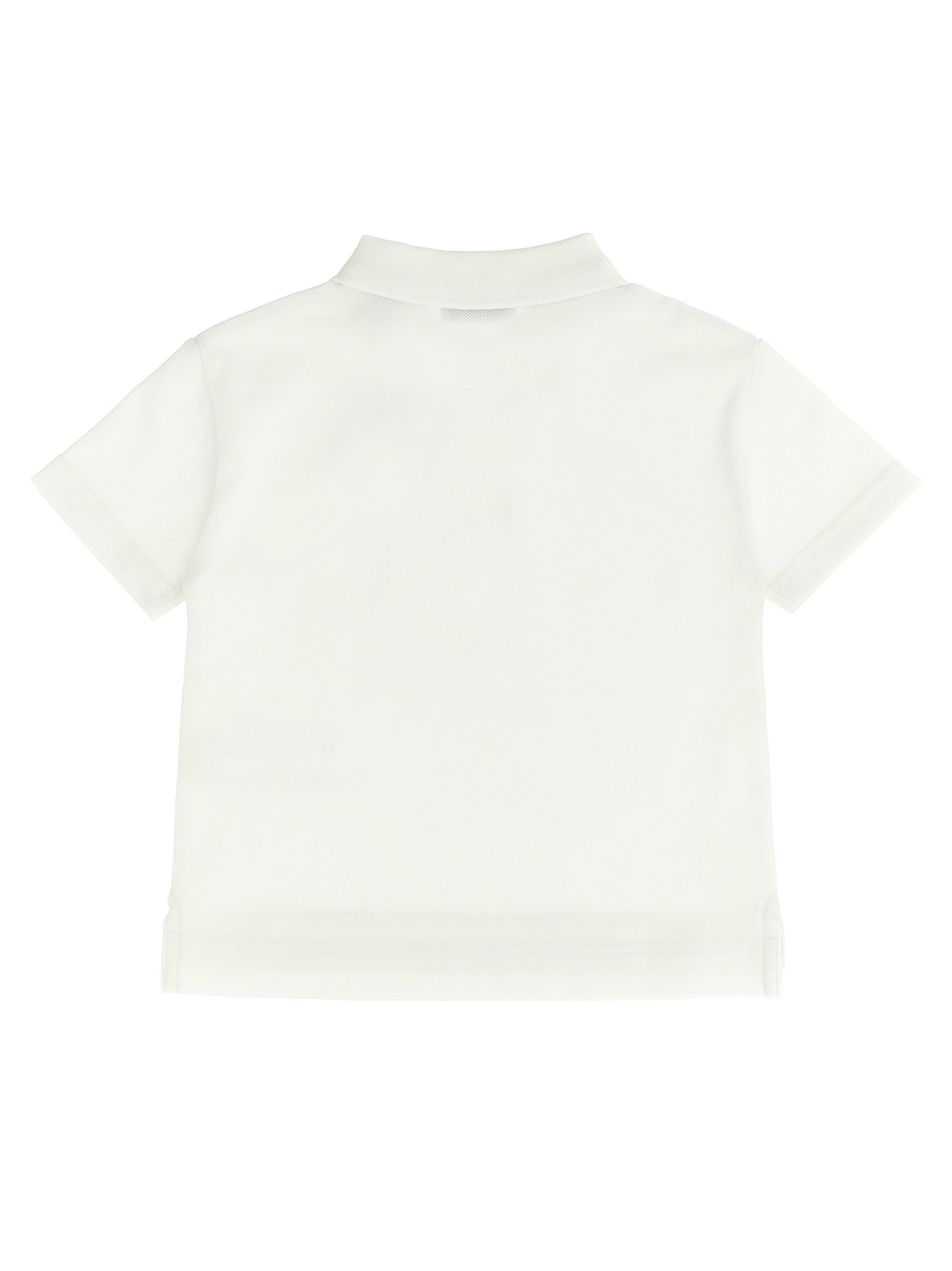 Поло из хлопкового пике 'Johane', контрастная вышивка 'Всадник' спереди, воротник и пуговицы с планкой в клетку Burberry, короткие рукава, асимметричный низ, боковые разрезы.