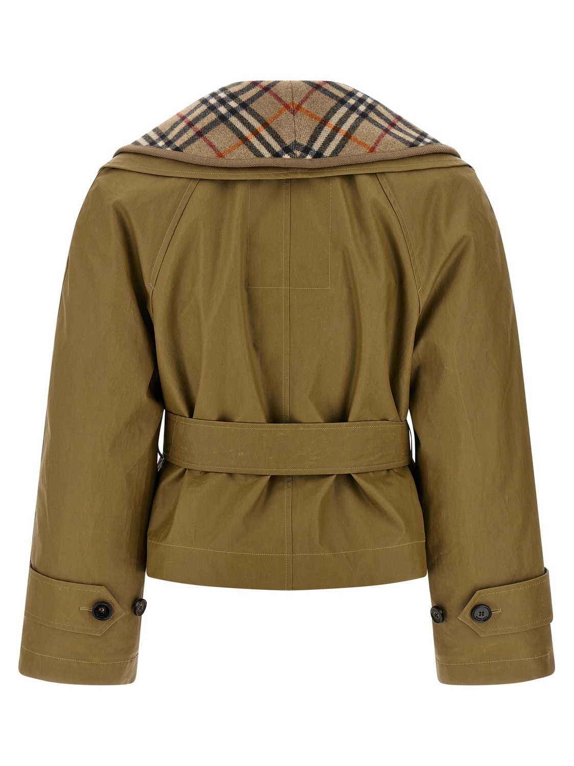 Куртка Burberry Check из вощеного хлопка 'Carlton' со съемной стеганой вставкой из шерсти, создающей контрастный эффект шали спереди, укороченного кроя, с воротником-шалью, застежкой на пуговицы спереди, карманами, длинными рукавами, поясом со съемной пряжкой в форме буквы B из металла.