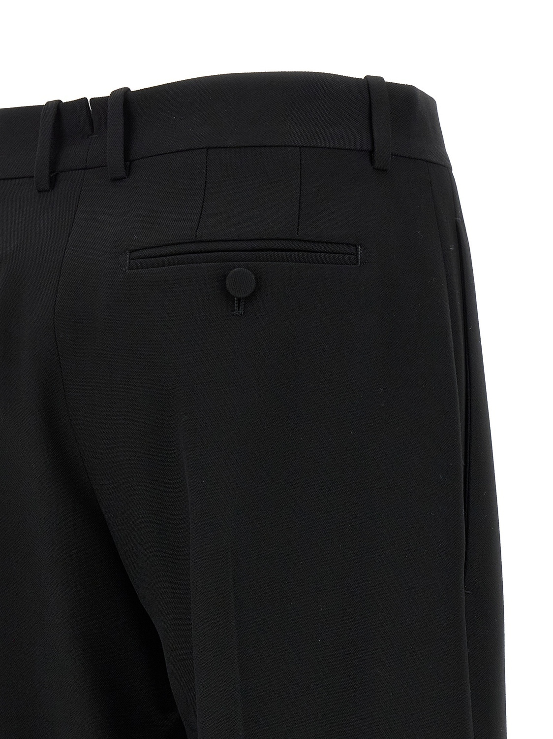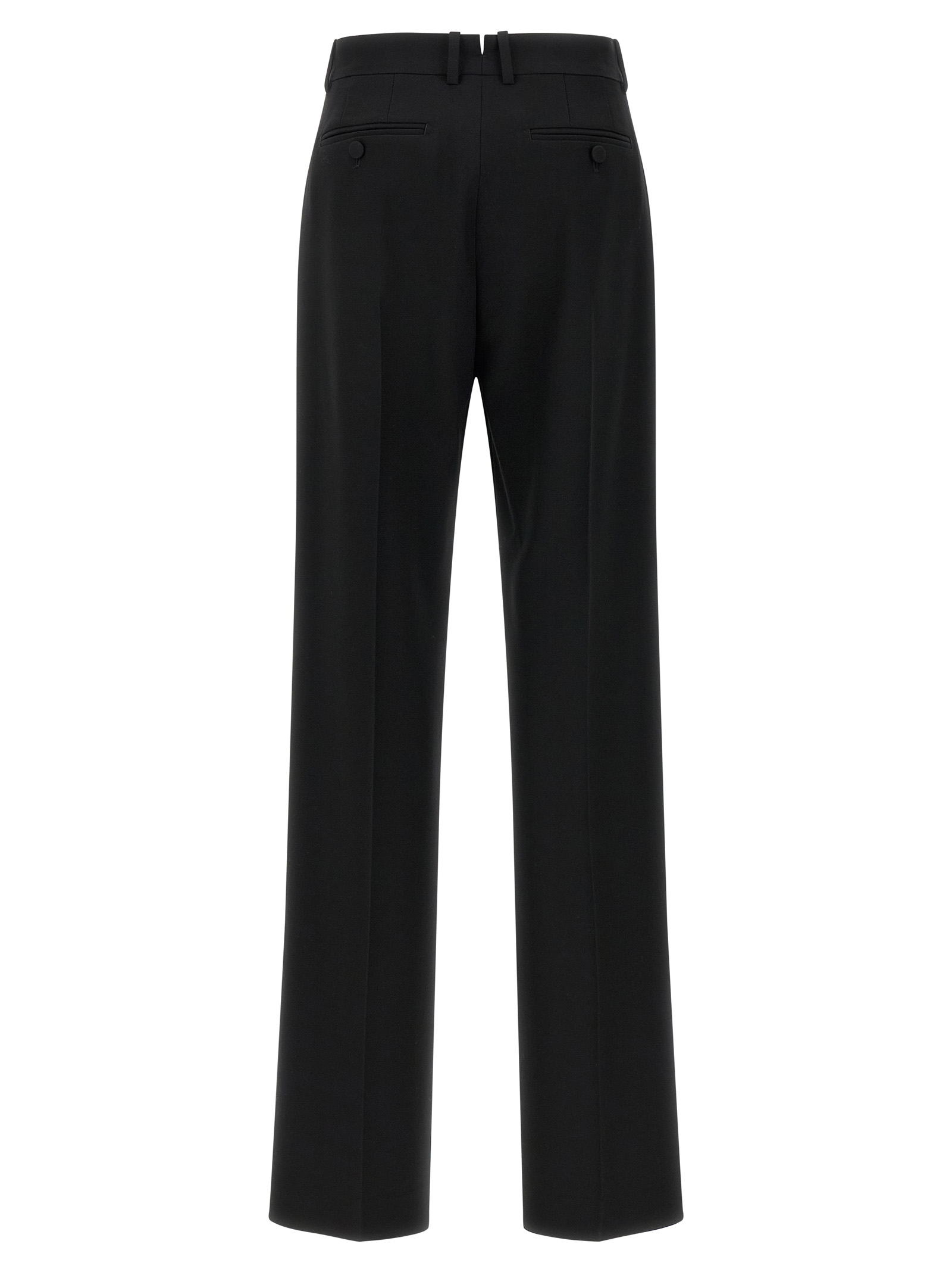 Классические брюки из шерсти virgin grain de poudre, прямые брючины, стрелки, складка, застежка на молнию, крючок и пуговицу спереди, карманы.