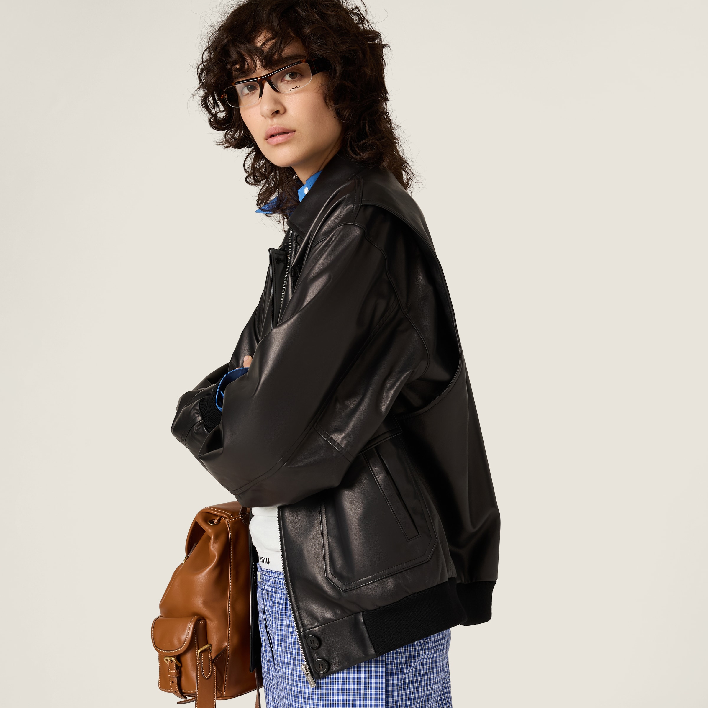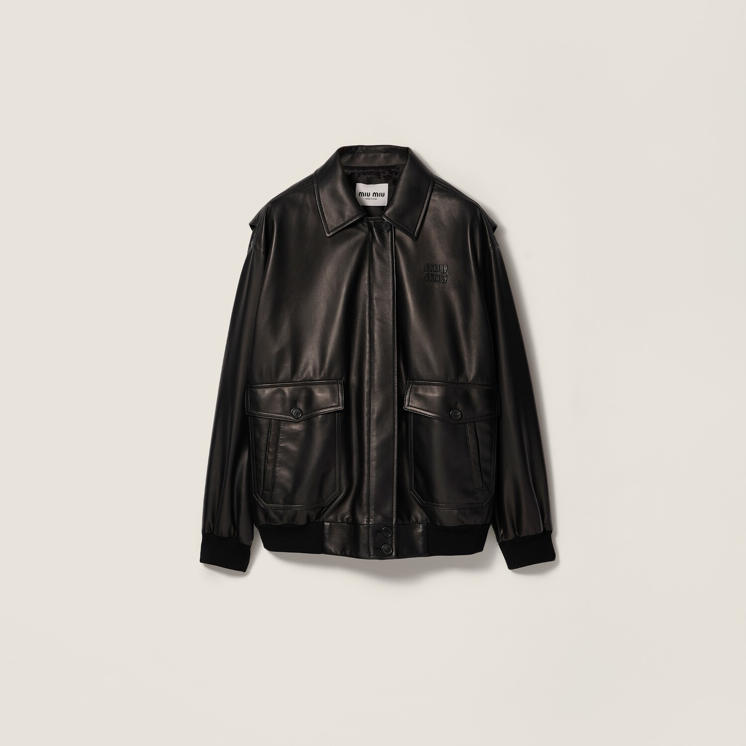 Куртка-бомбер из кожи наппа MIU MIU, черное