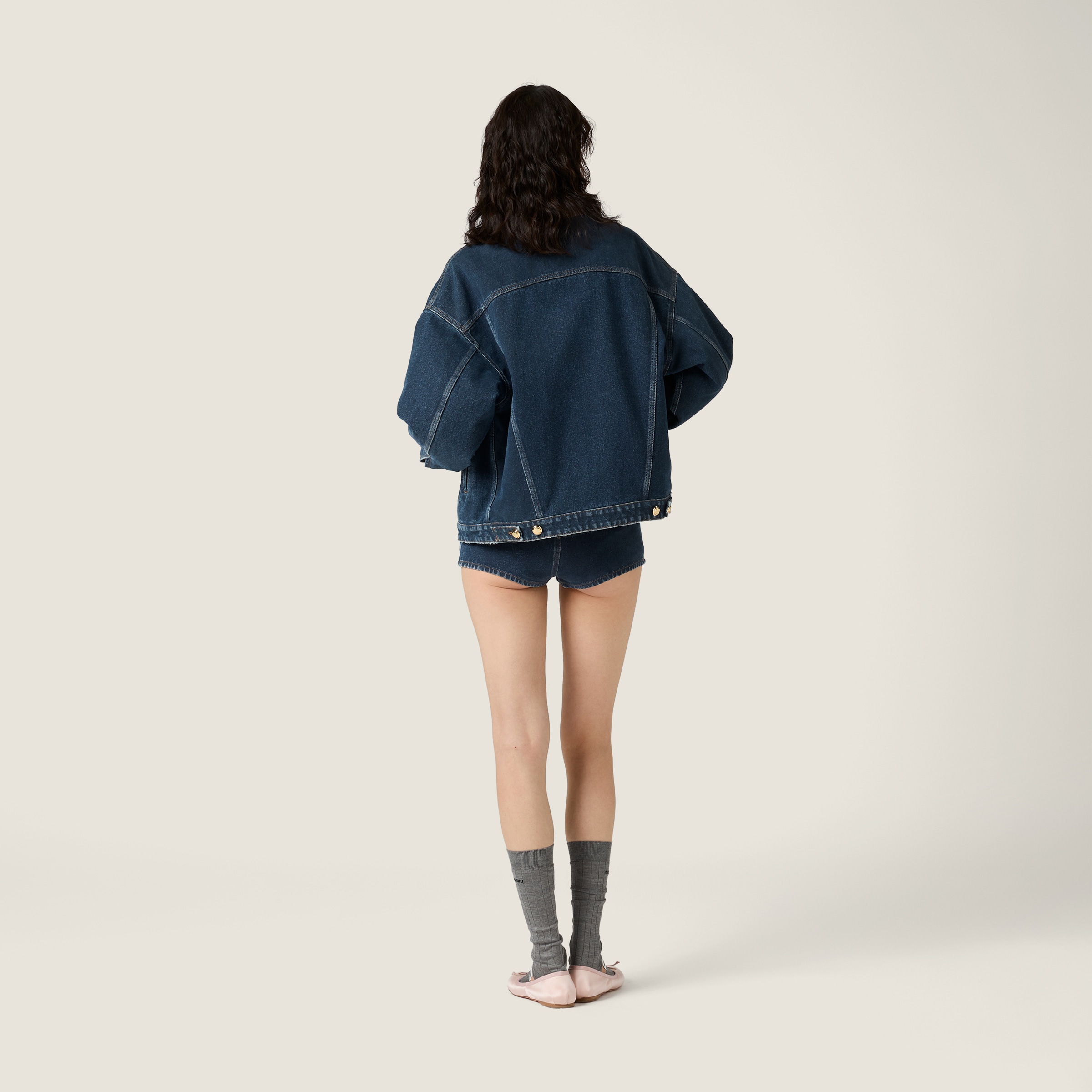 Блусон из флокированного денима и бархата MIU MIU, темно-синий