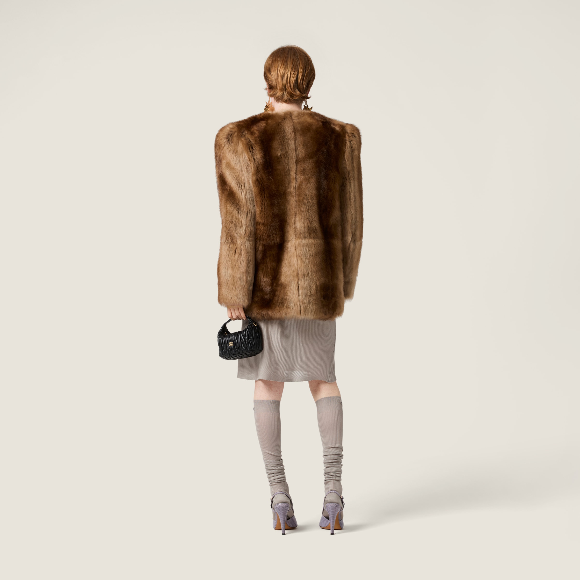 Винтажные мотивы определяют характер этой дубленки. Изысканный объем сияющего меха вместе с утонченными хроматическими переходами, выполненными вручную, воплощают новую женственность, балансирующую между иронией и подлинным буржуазным стилем.