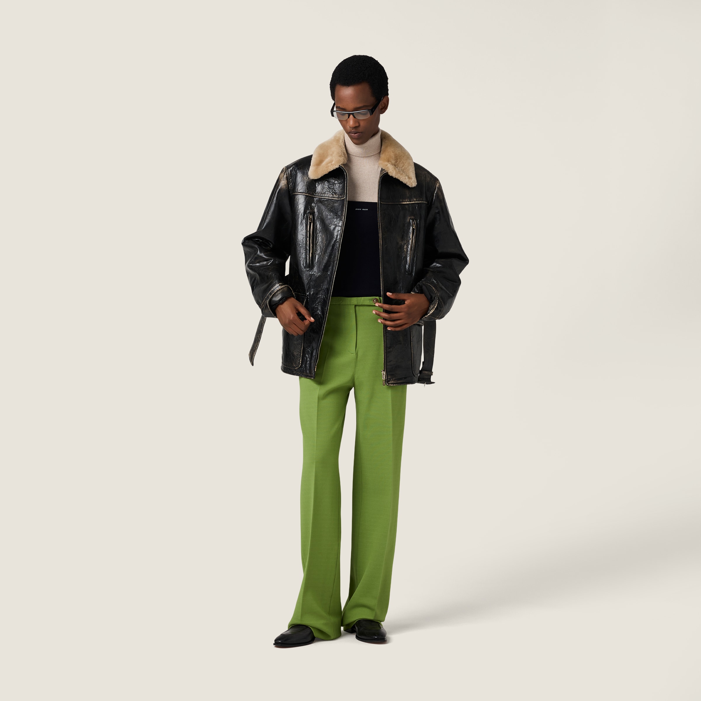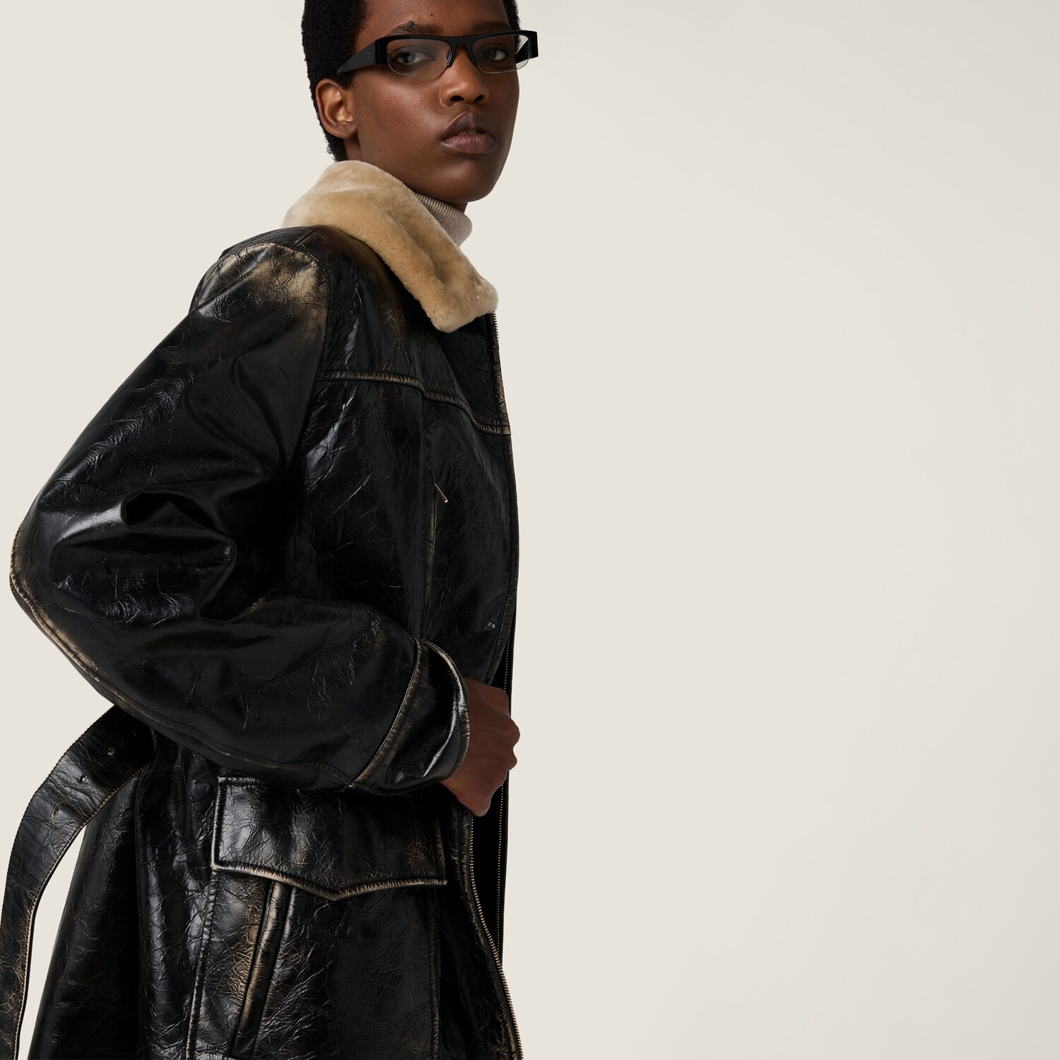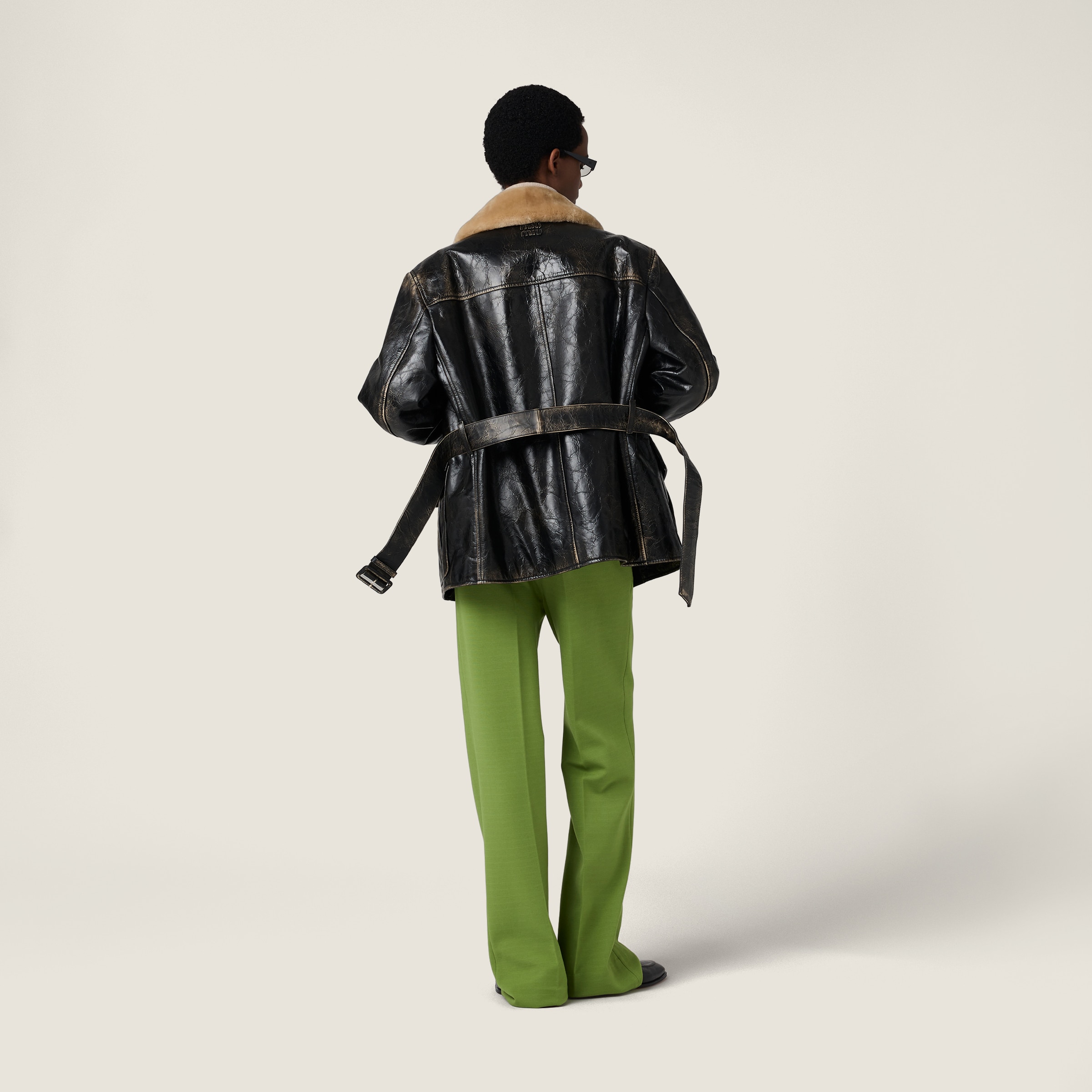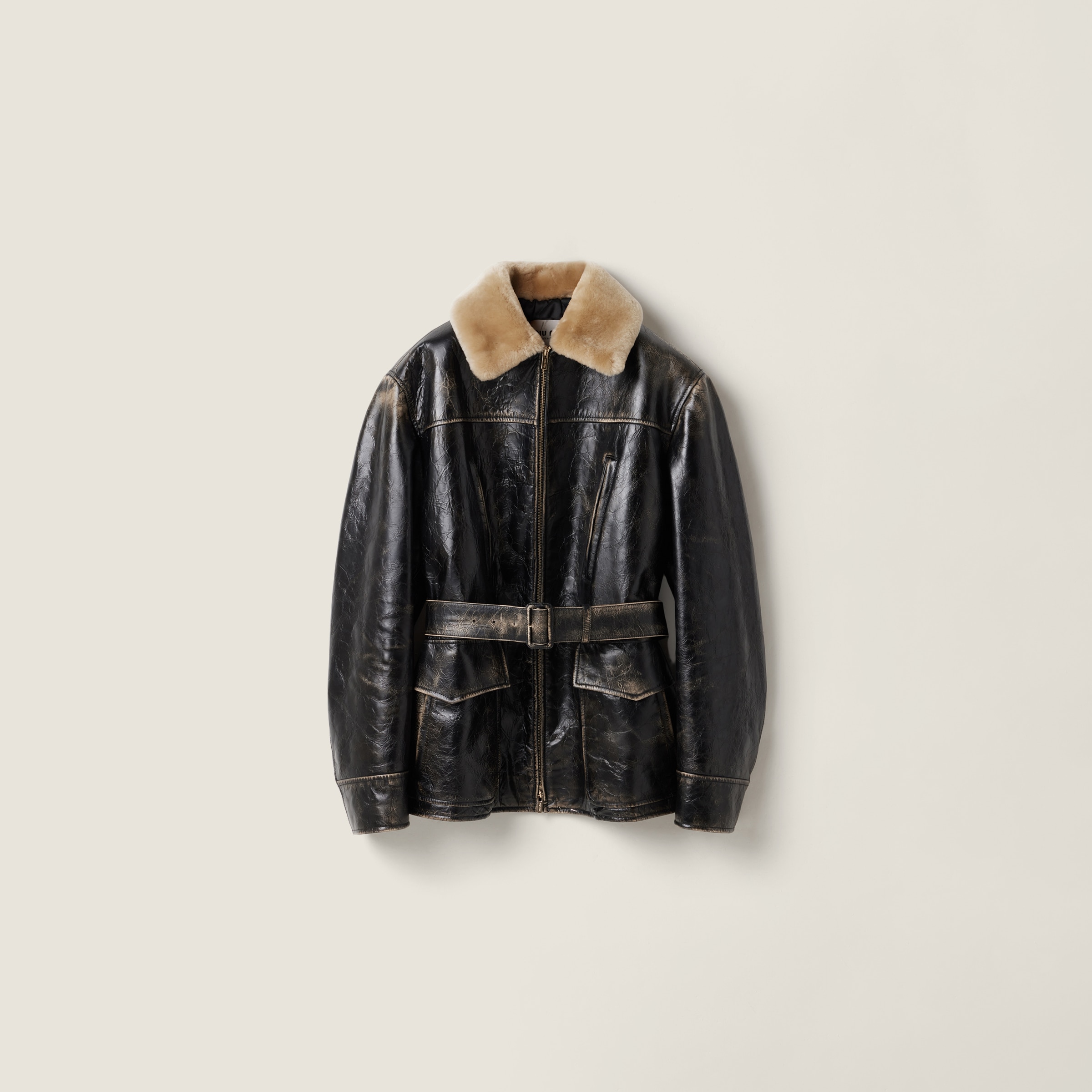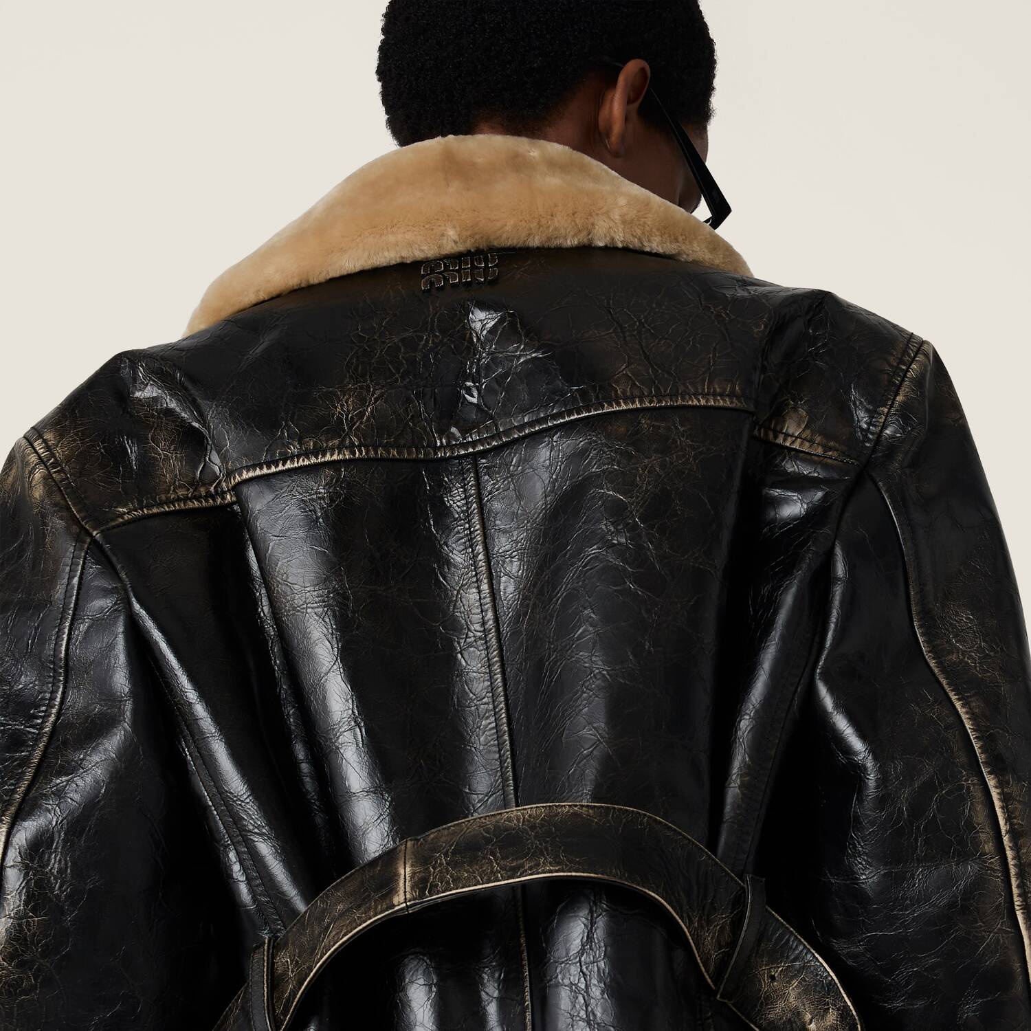 Куртка-кабин из телячьей кожи MIU MIU, черное