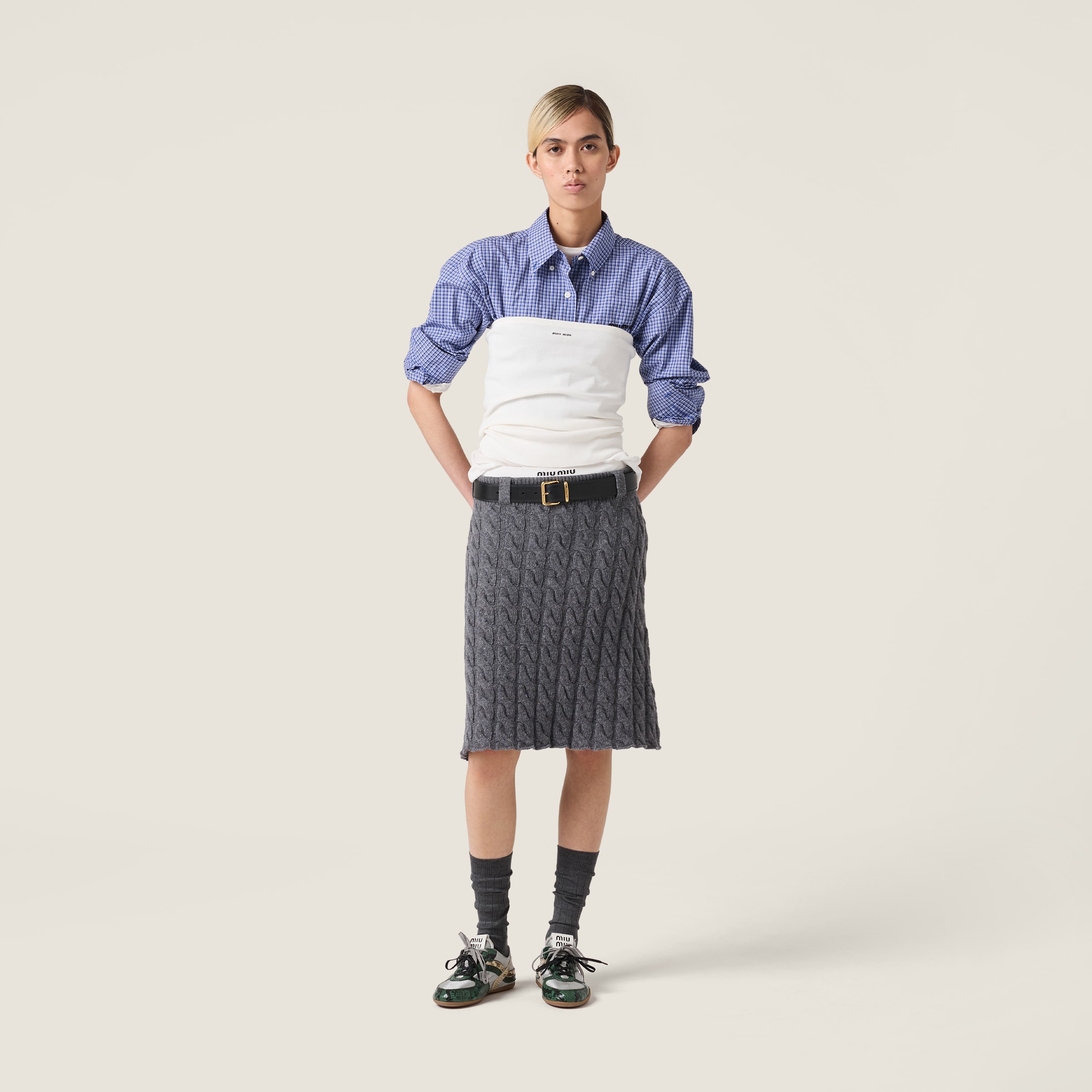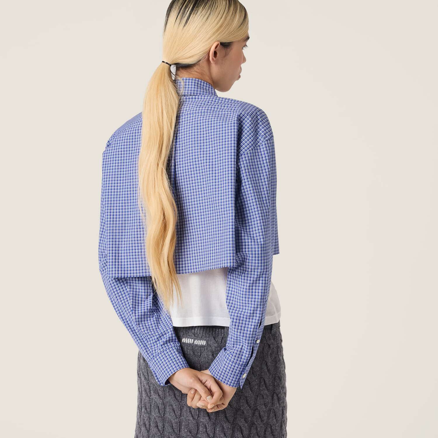 Неожиданный укороченный силуэт и культовый клетчатый мотив придают этой рубашке из поплина оттенок иронии, превращая ее в универсальную вещь, идеально подходящую для многослойных образов с современным настроением.