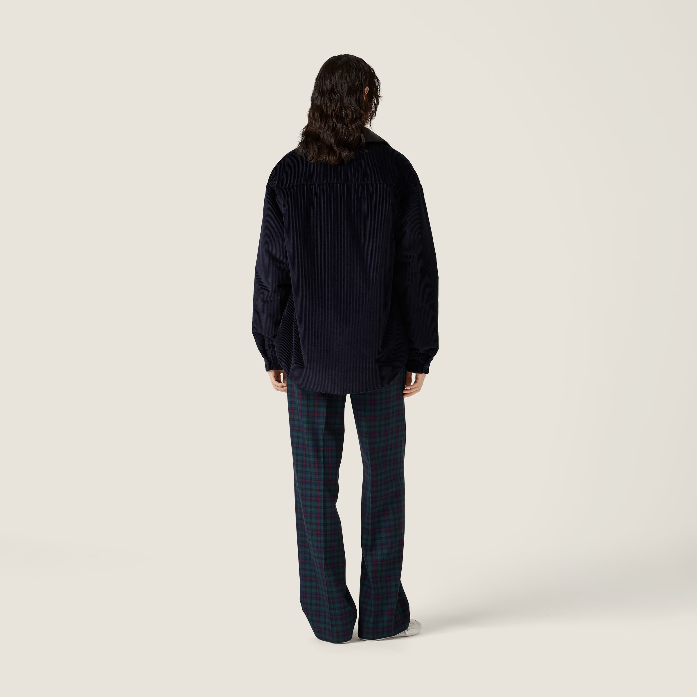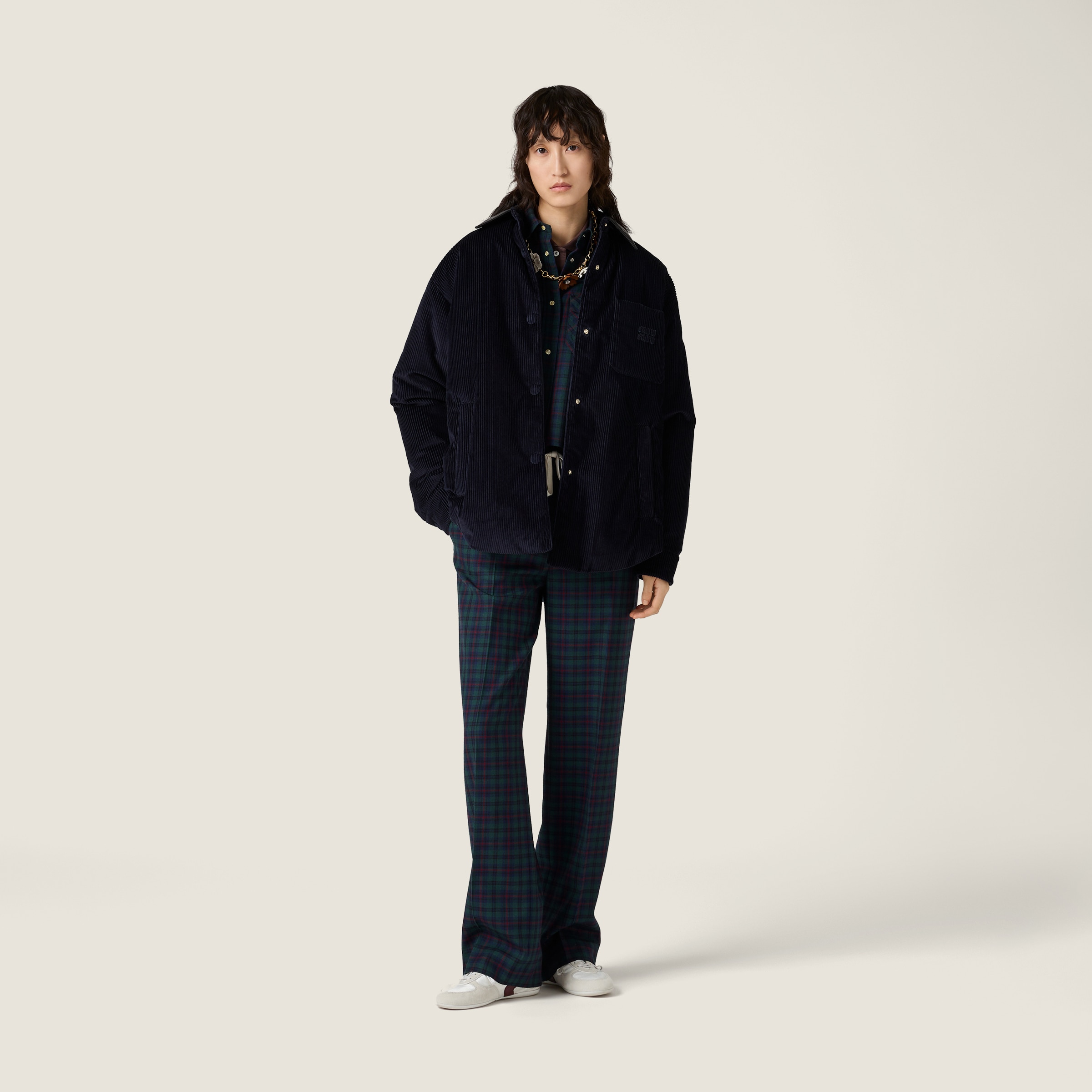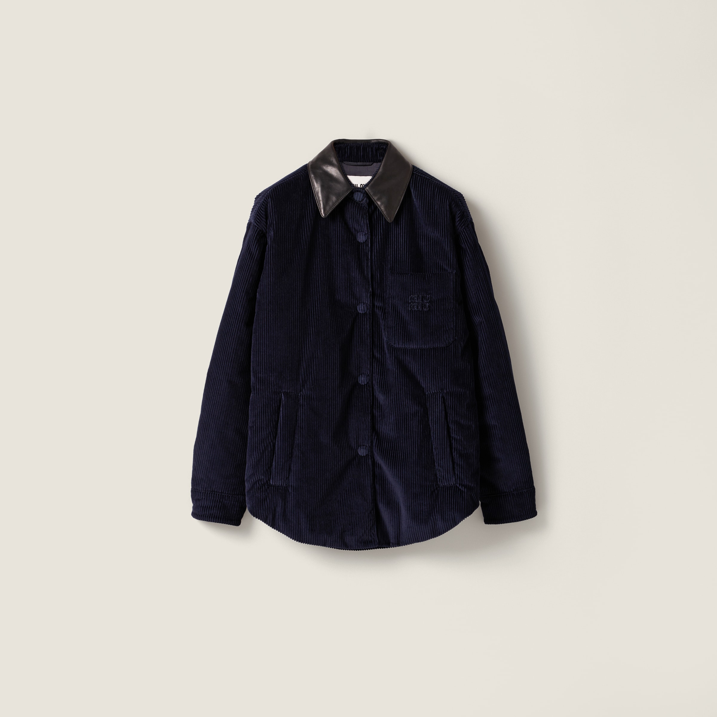 Стеганая куртка из вельвета и наппы MIU MIU, темно-синий