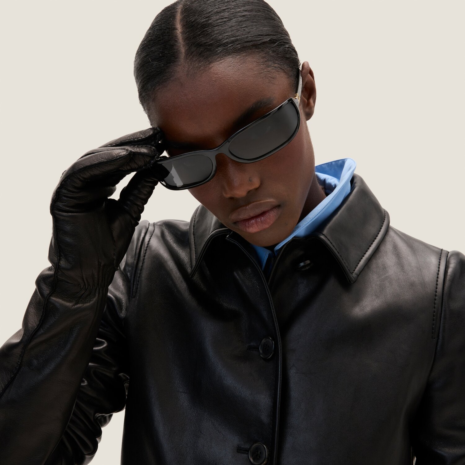 Винтажные детали определяют силуэт этого кожаного пальто, которое отличается приталенным кроем, рукавами три четверти и тисненным логотипом.