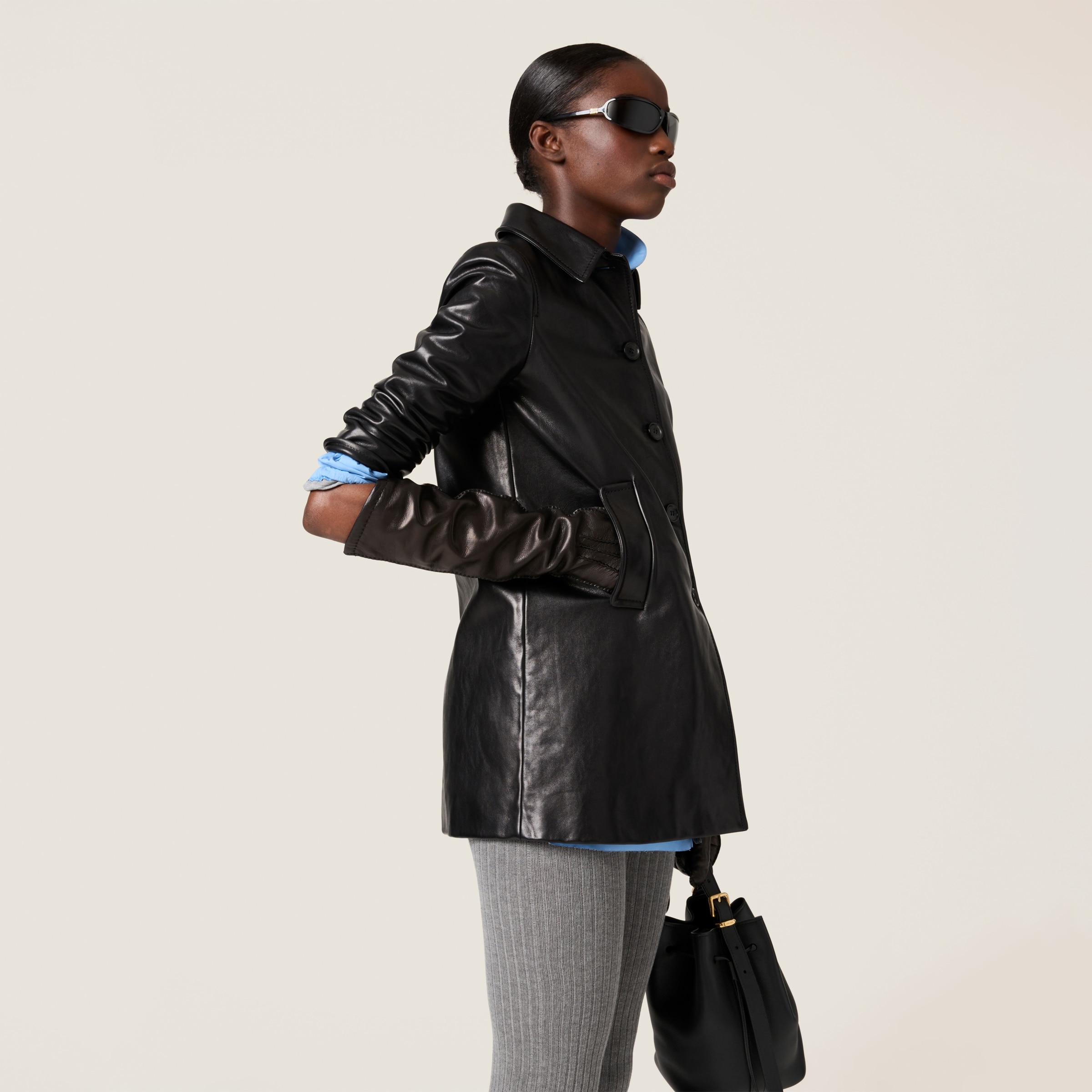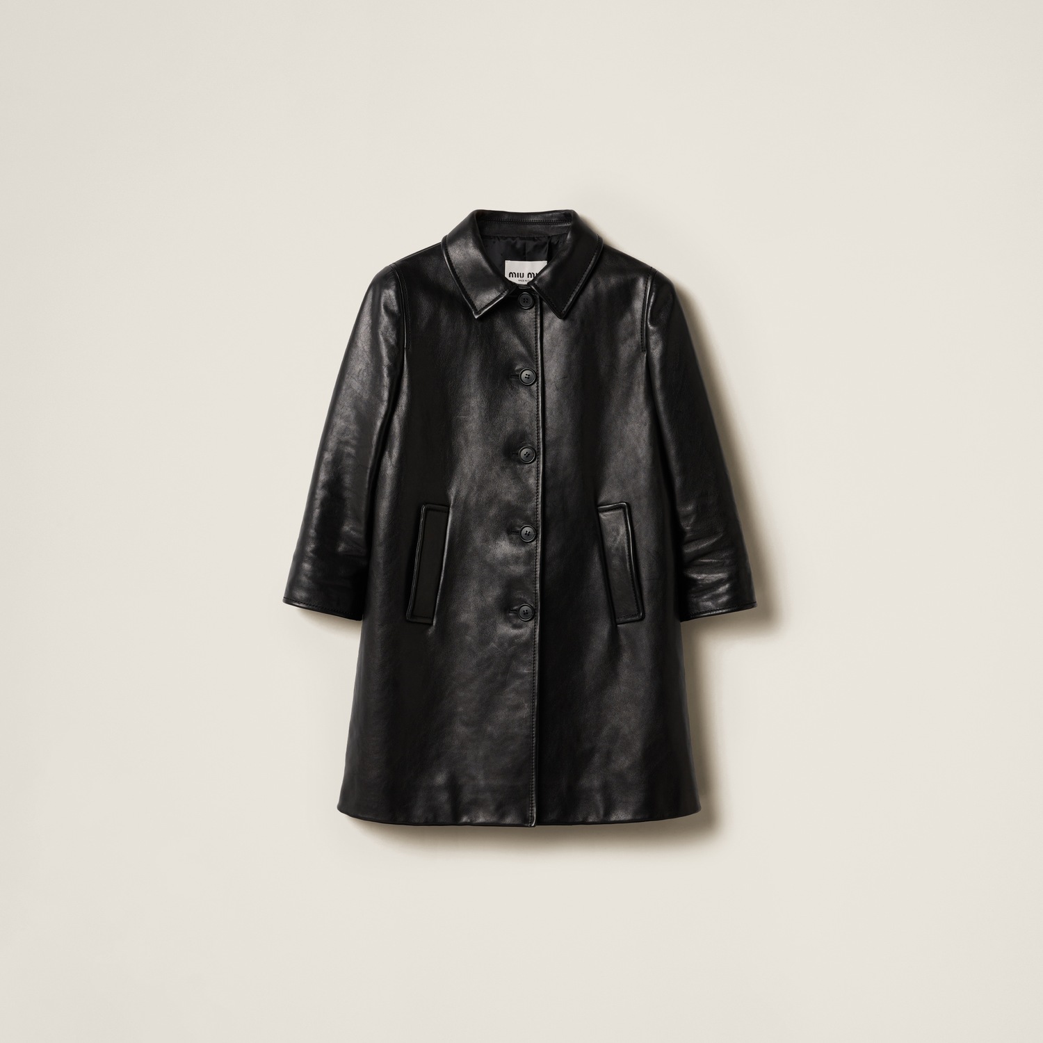 Кожаное пальто MIU MIU, черное