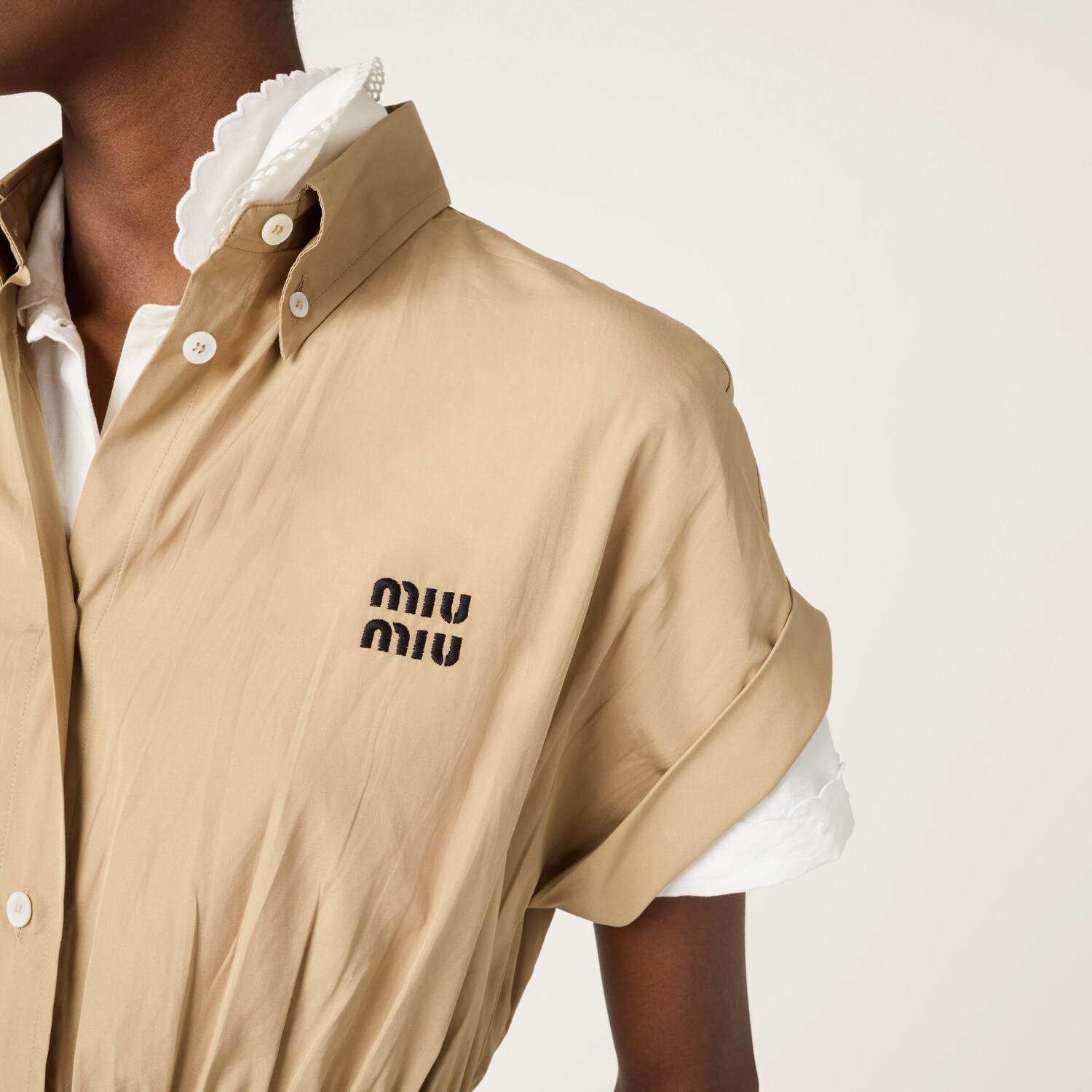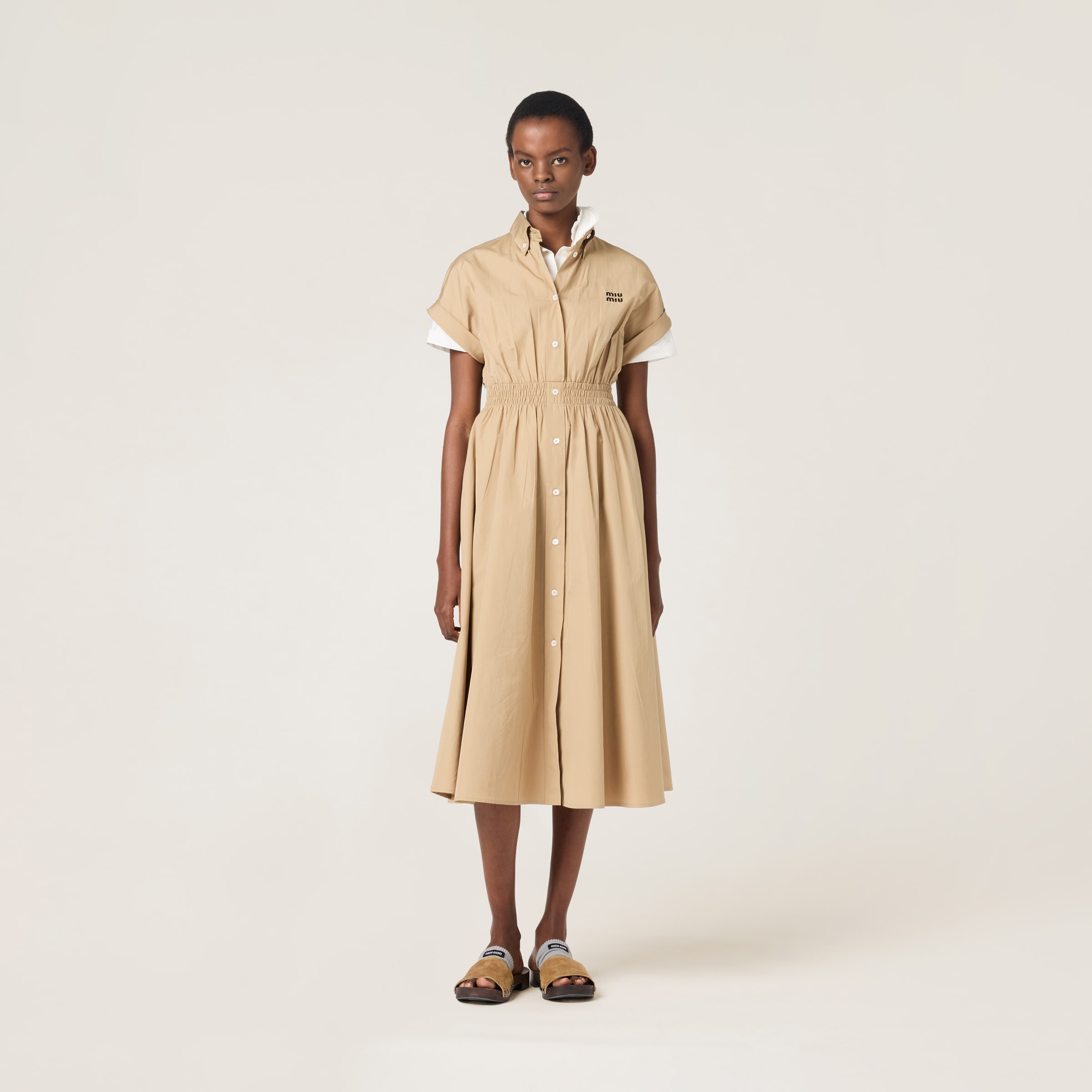 Сорочка-платье из поплина MIU MIU, хаки