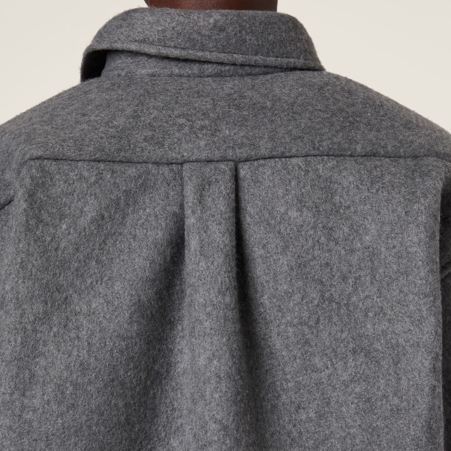 Эта рубашка из флиса в мужском стиле переосмысливает эстетику 90-х благодаря свободному крою, воротнику на пуговицах и вышитому логотипу, который подчеркивает ее культовый характер.