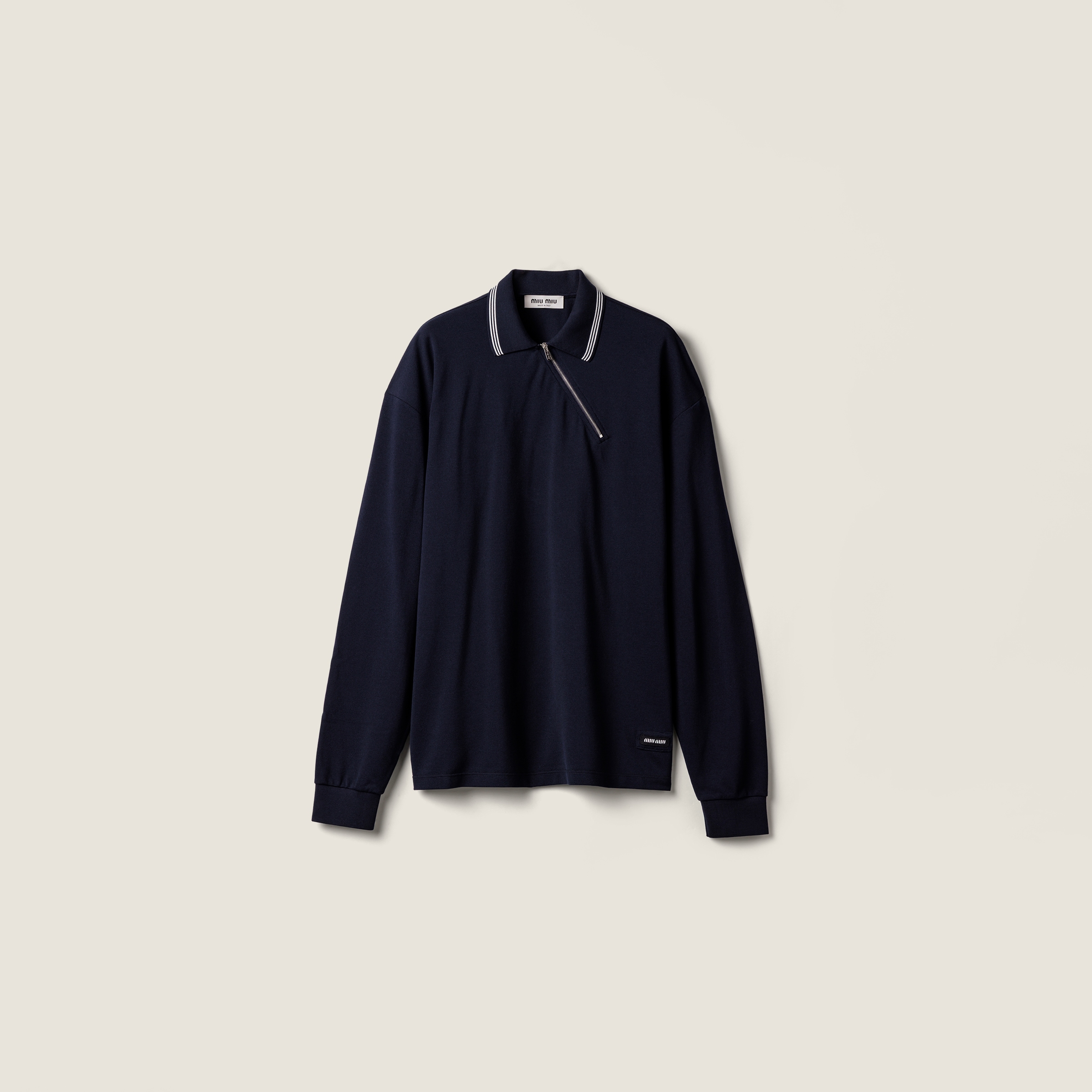 Поло из хлопкового пике на молнии MIU MIU, темно-синий 106 956₽