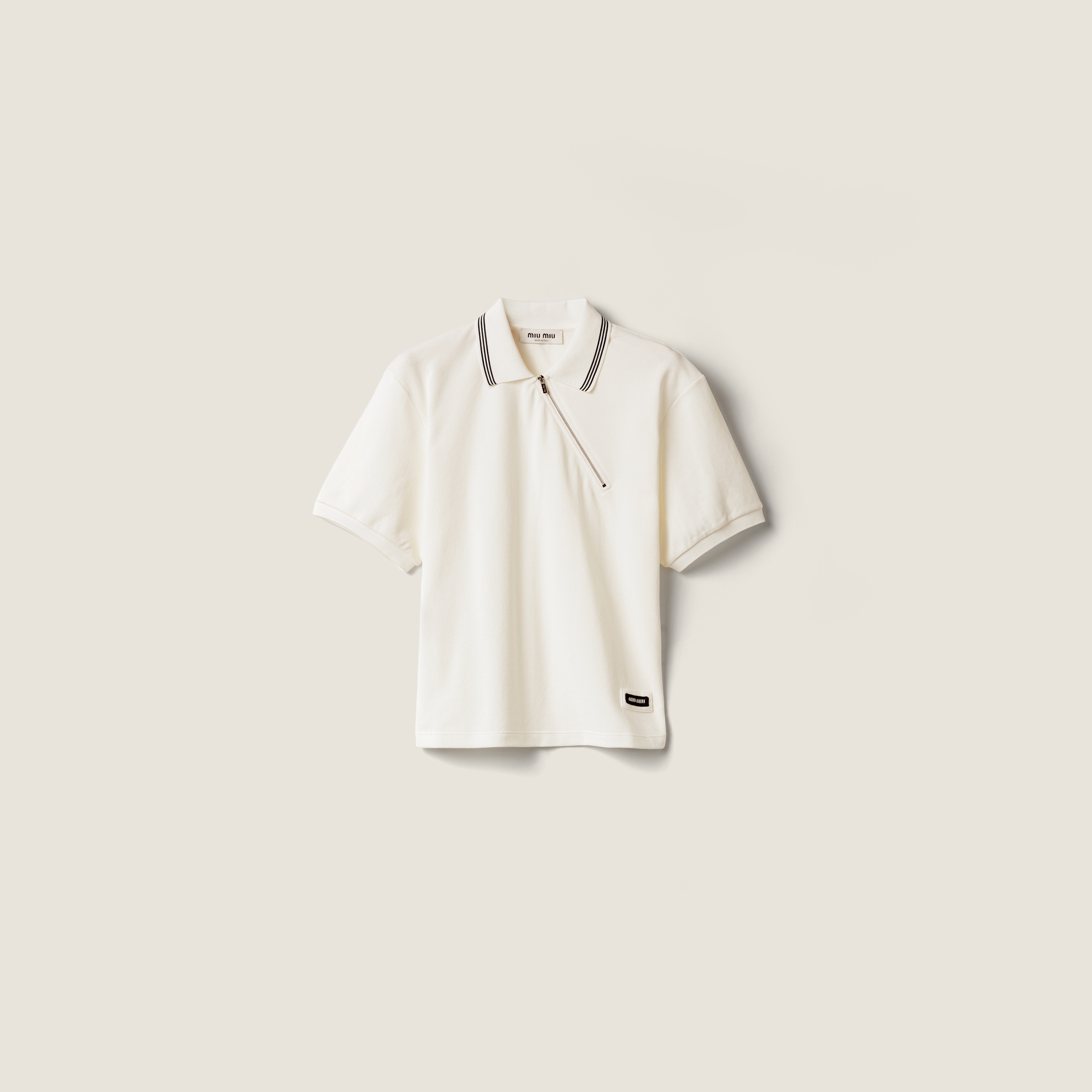 Поло на молнии из хлопкового пике MIU MIU, белый